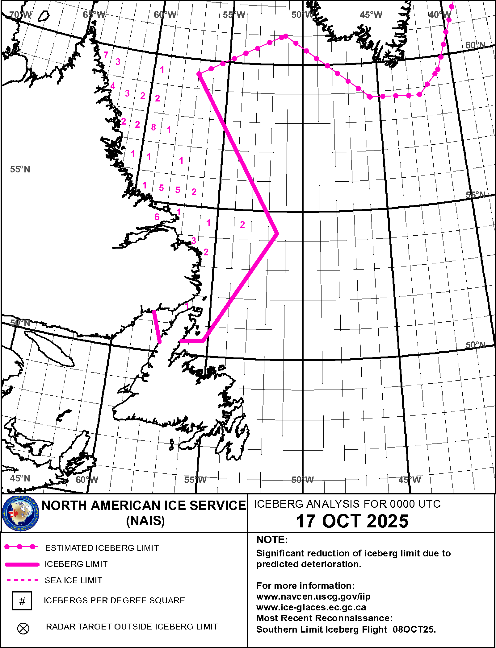 Iceberg Analysis USCG International Ice Patrol ice-berg 17 Oct 2025 20251017_NAIS65 | ||