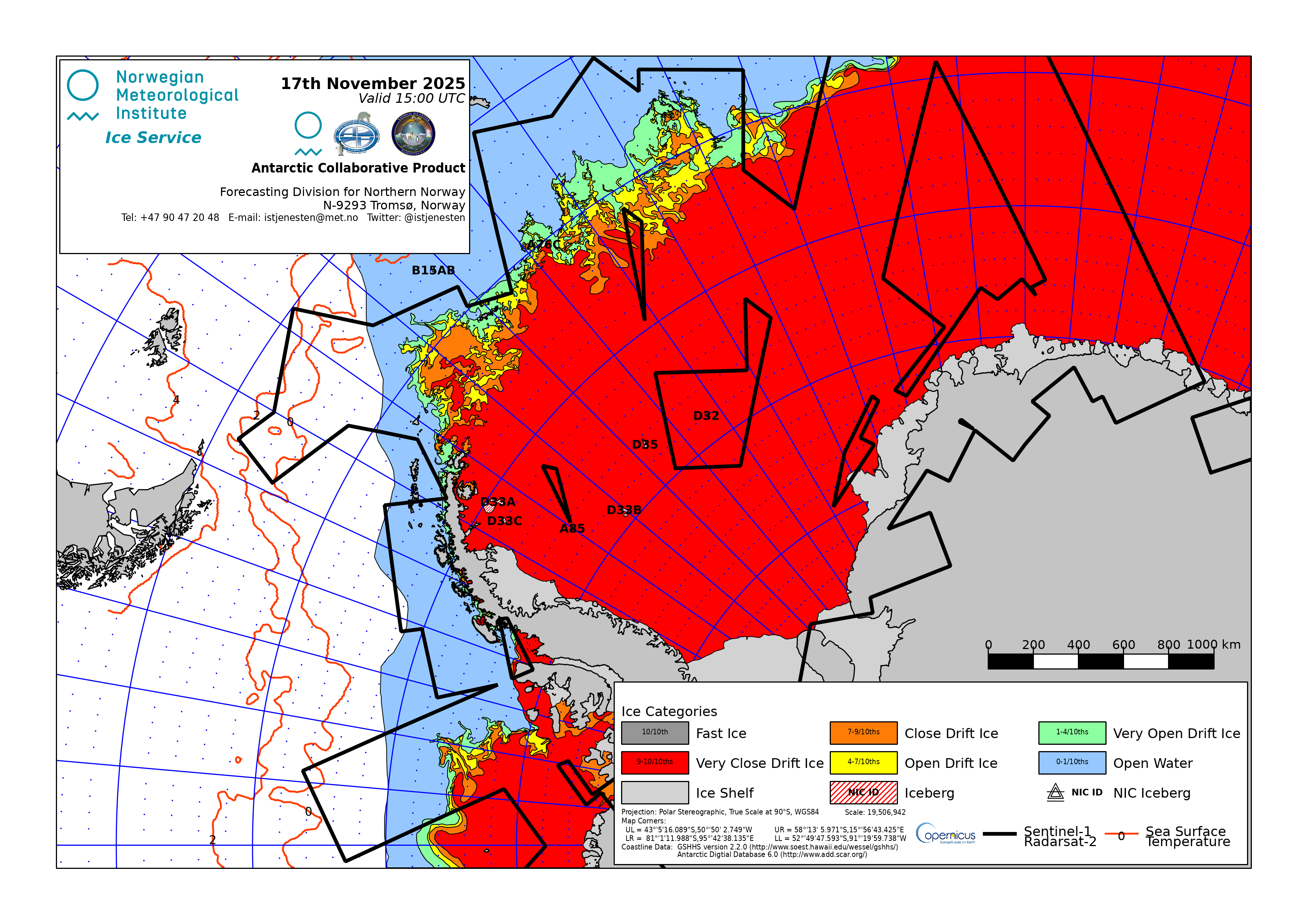 Bransfield Strait Norwegian Meteorological Institute - Norwegian Ice Service ice-concentration 20 Nov 2025 20251120 | ||