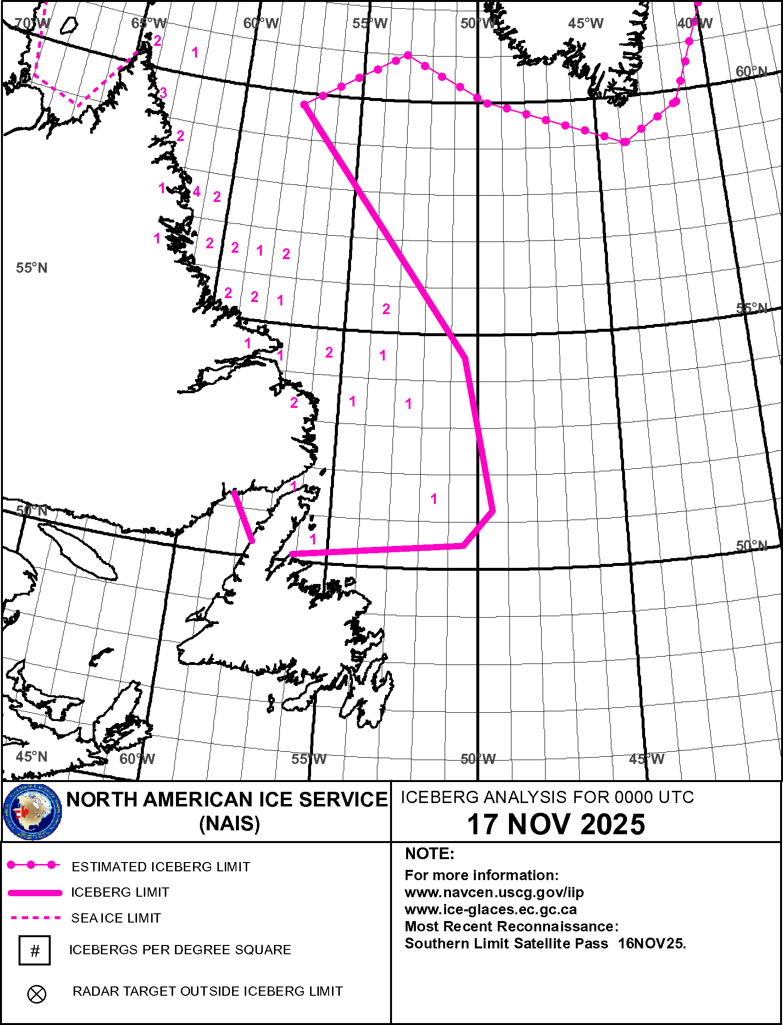 Iceberg Analysis USCG International Ice Patrol ice-berg 17 Nov 2025 20251117_NAIS65 | ||