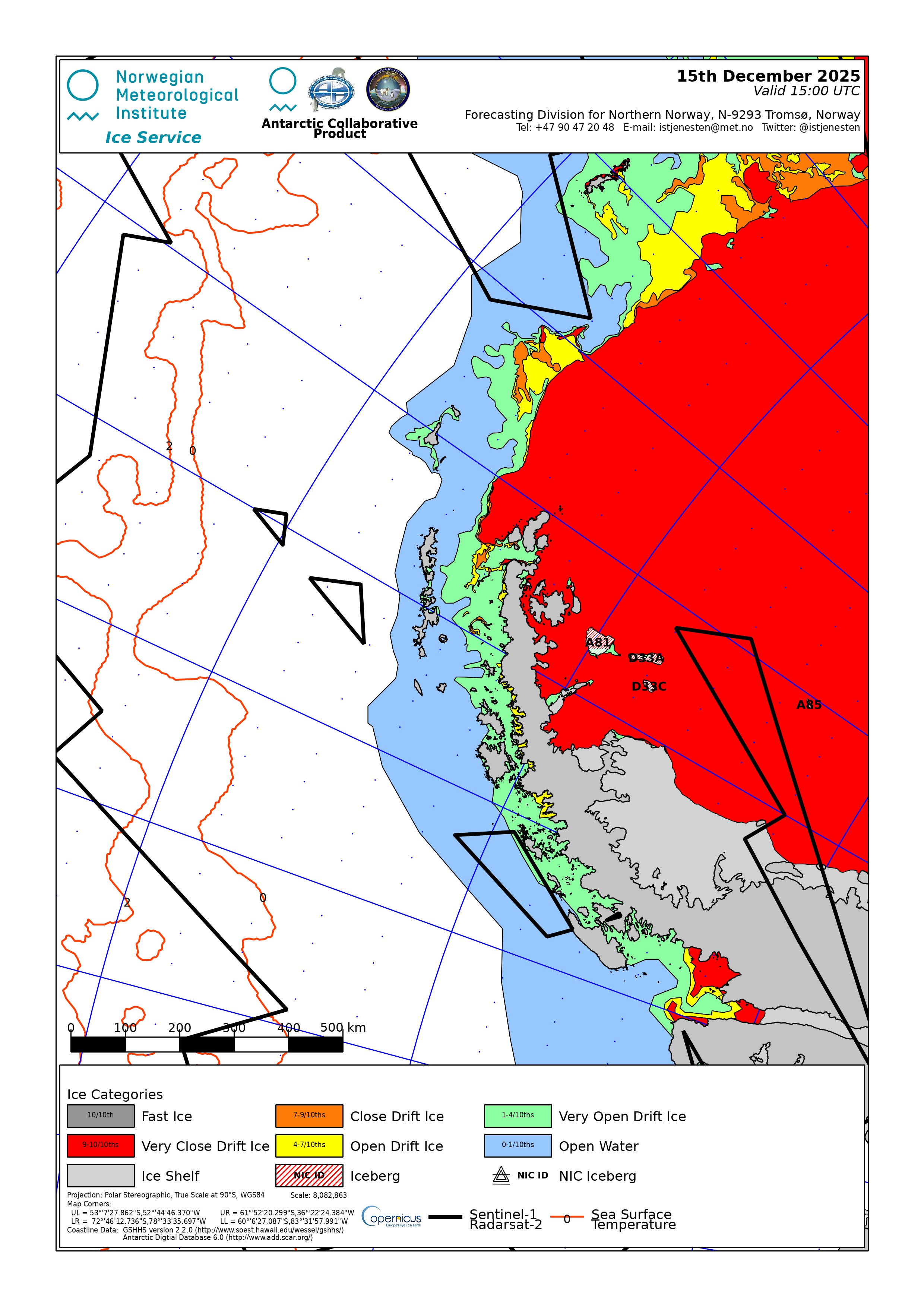 Bransfield Strait Norwegian Meteorological Institute - Norwegian Ice Service ice-concentration 27 Dec 2025 20251227 | ||