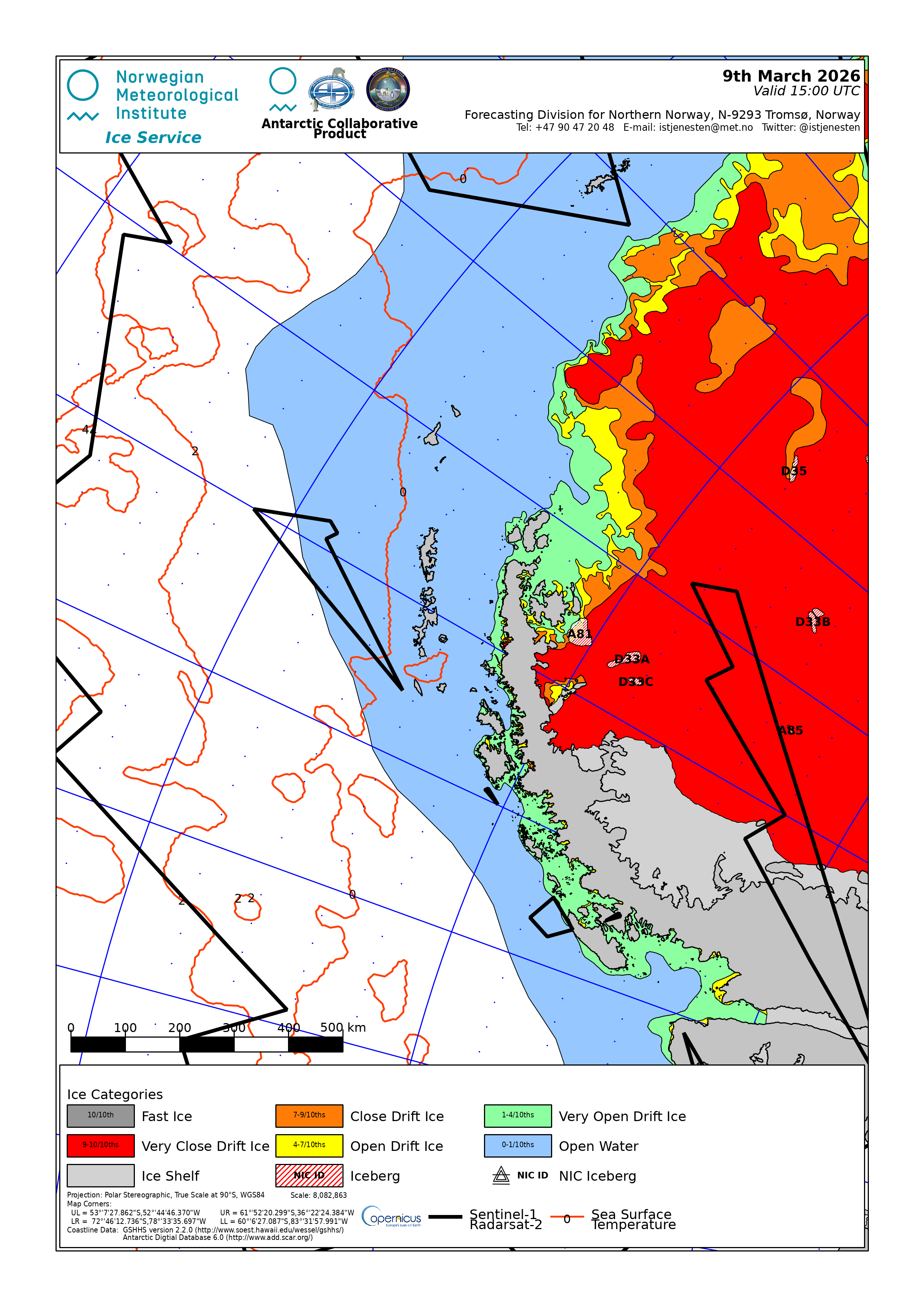 Antarctic Peninsula Norwegian Meteorological Institute - Norwegian Ice Service ice-concentration 14 Mar 2026 20260314 | ||