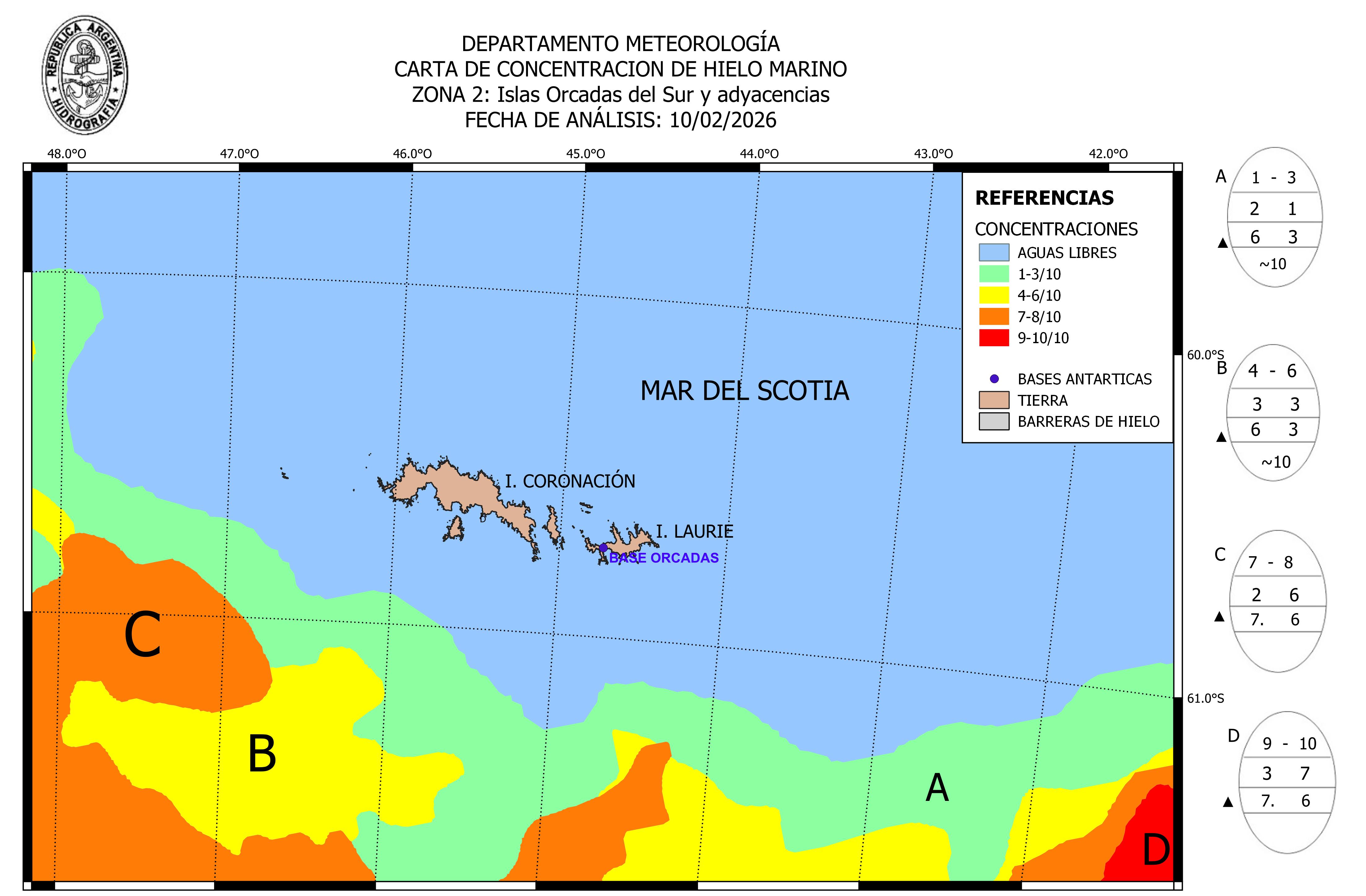 South Orkneys Argentine Naval Hydrographic Service ice-concentration 10 Feb 2026 20260210_ZONA2 | ||