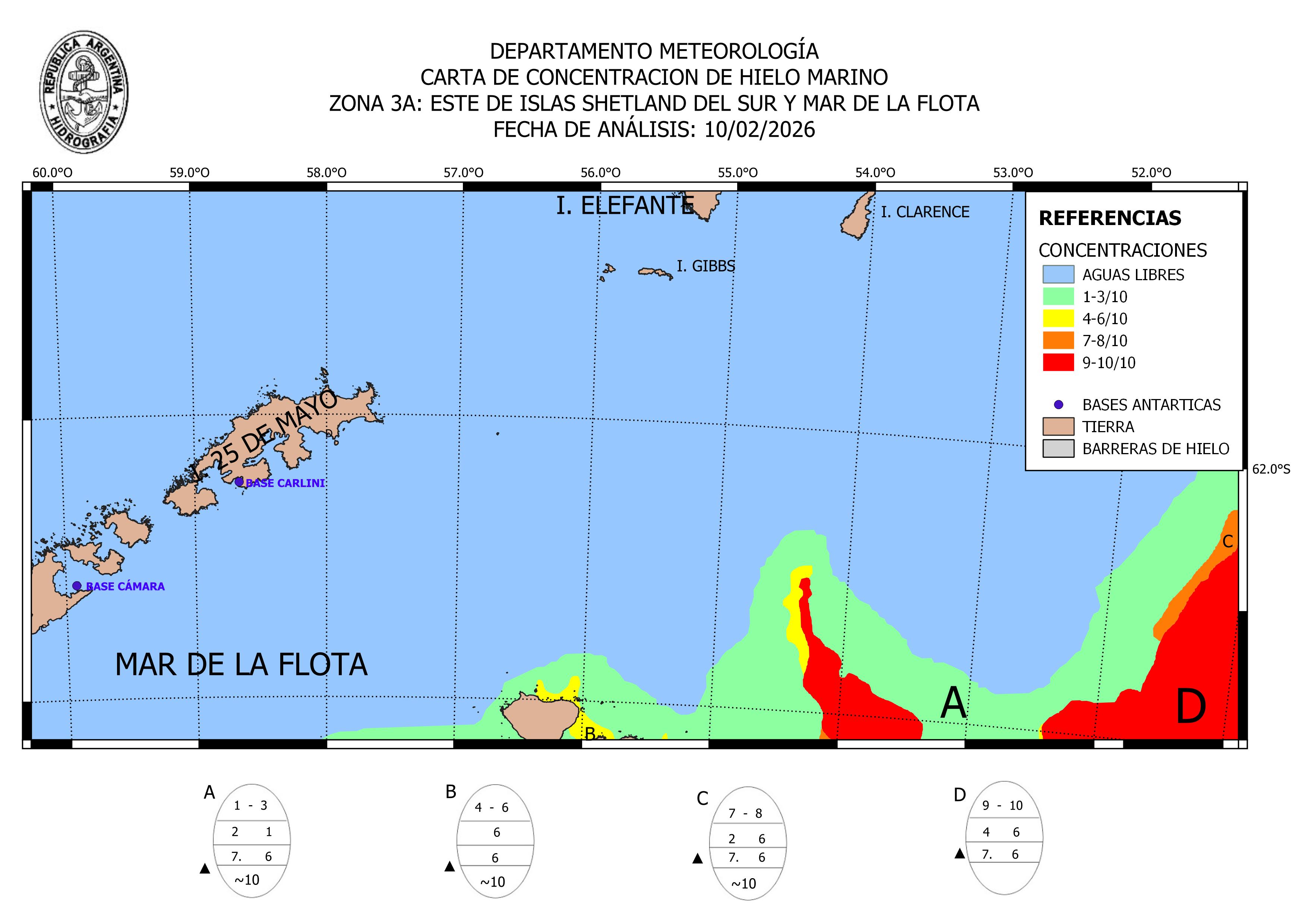 South Shetland Islands West Argentine Naval Hydrographic Service ice-concentration 10 Feb 2026 20260210_ZONA3B | ||