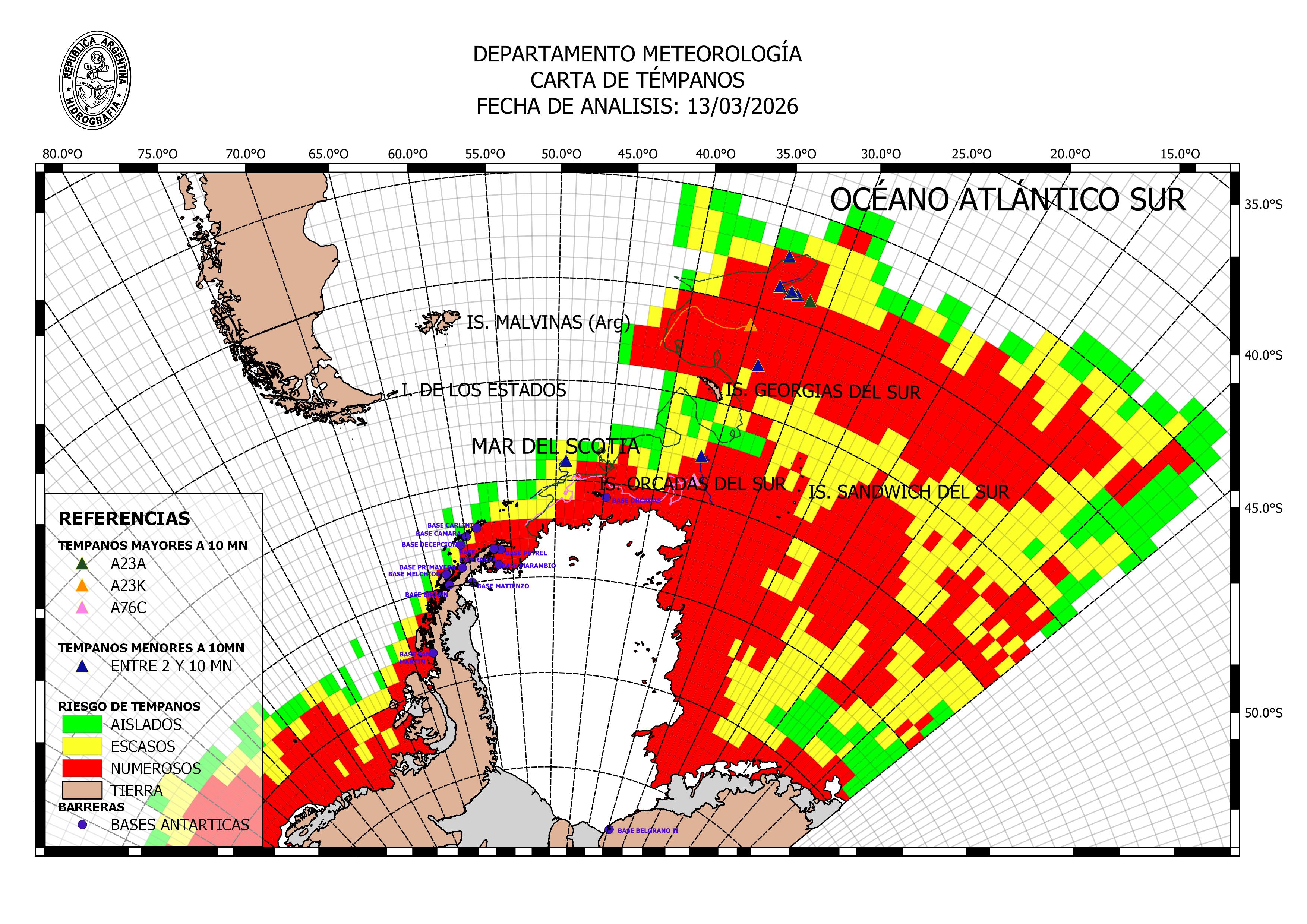 South Atlantic Ice Berg Analysis Argentine Naval Hydrographic Service ice-berg 13 Mar 2026 20260313_T10 | ||