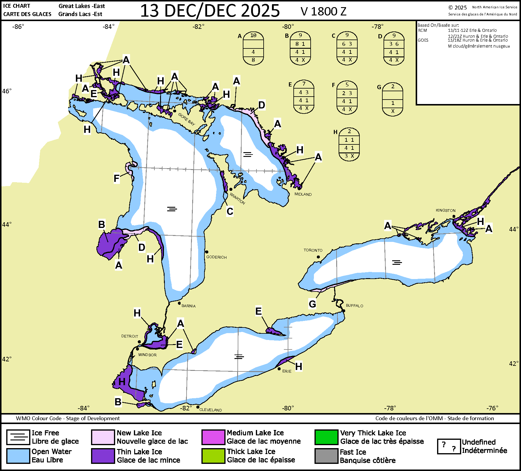 Great Lakes East - Concentration Canadian Ice Service ice-concentration 13 Dec 2025 NAIS25ECT_20251213 | ||