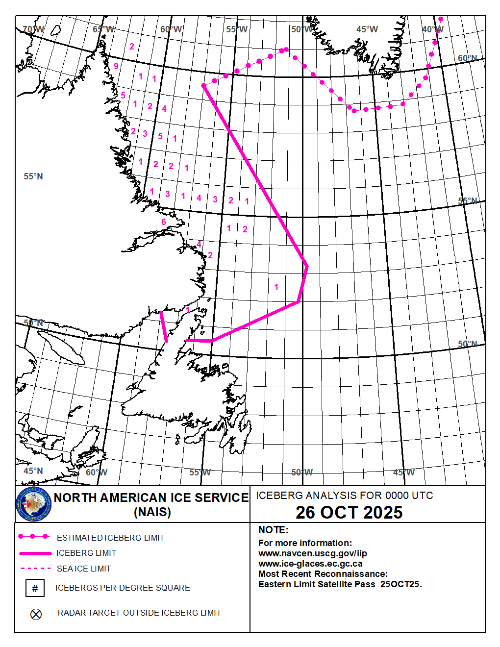 Iceberg Analysis USCG International Ice Patrol ice-berg 26 Oct 2025 20251026_NAIS65 | ||