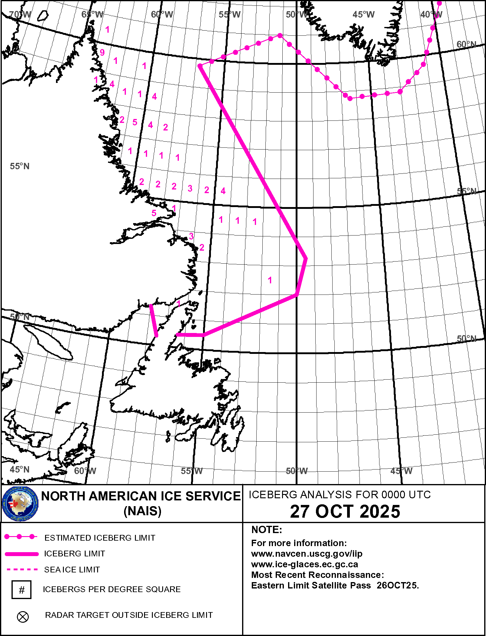 Iceberg Analysis USCG International Ice Patrol ice-berg 27 Oct 2025 20251027_NAIS65 | ||