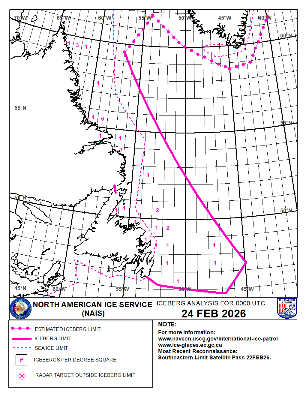 Iceberg Analysis USCG International Ice Patrol ice-berg 24 Feb 2026 20260224_NAIS65 | ||