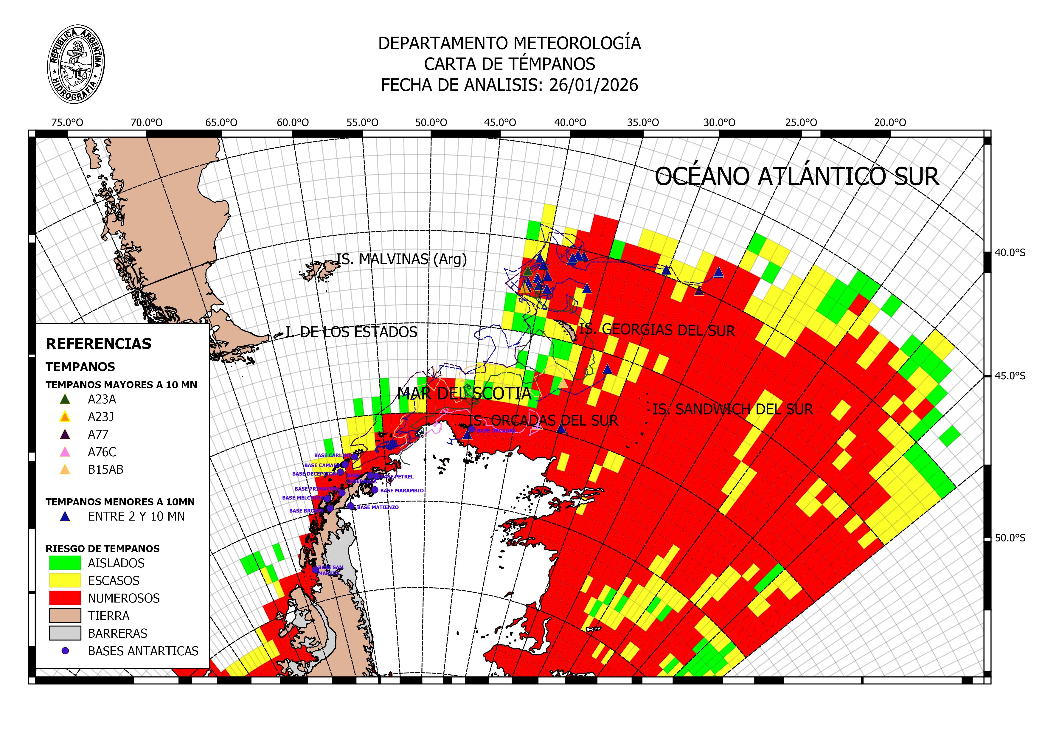 South Atlantic Ice Berg Analysis Argentine Naval Hydrographic Service ice-berg 26 Jan 2026 20260126_T10 |