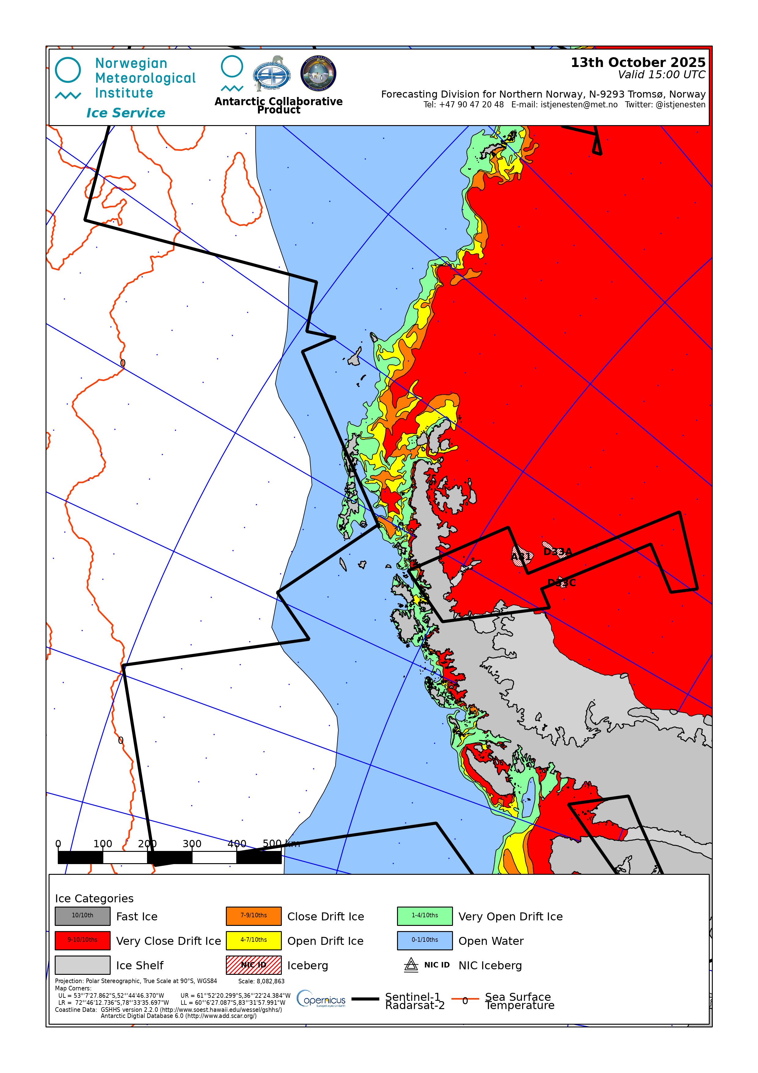 Bransfield Strait Norwegian Meteorological Institute - Norwegian Ice Service ice-concentration 19 Oct 2025 20251019 | ||