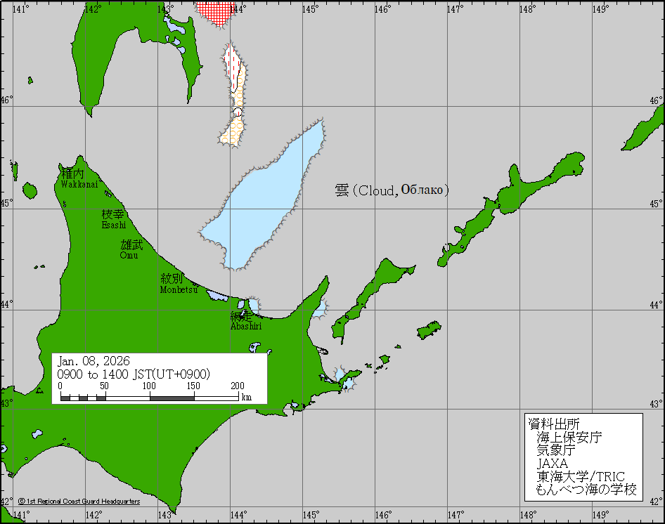 Sea around Japan - Concentration Japan Ice Information Center (Japan Coast Guard) ice-concentration 9 Jan 2026 260109 | ||