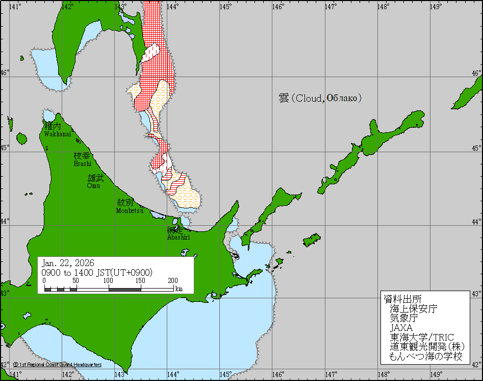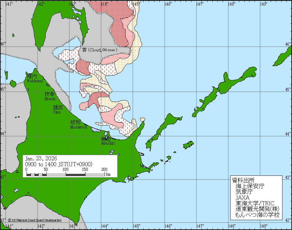 Sea around Japan - Concentration Japan Ice Information Center (Japan Coast Guard) ice-concentration 23 Jan 2026 260123 | ||