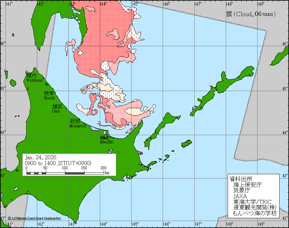 Sea around Japan - Concentration Japan Ice Information Center (Japan Coast Guard) ice-concentration 24 Jan 2026 260124 | ||