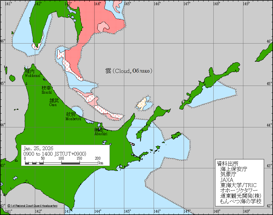 Sea around Japan - Concentration Japan Ice Information Center (Japan Coast Guard) ice-concentration 25 Jan 2026 260125 | ||