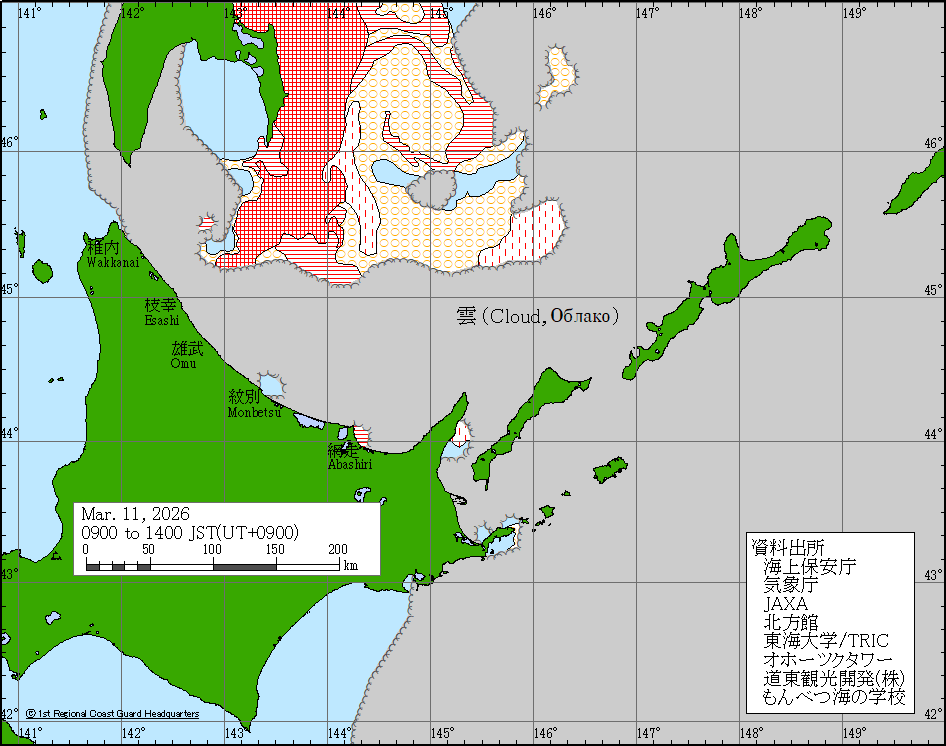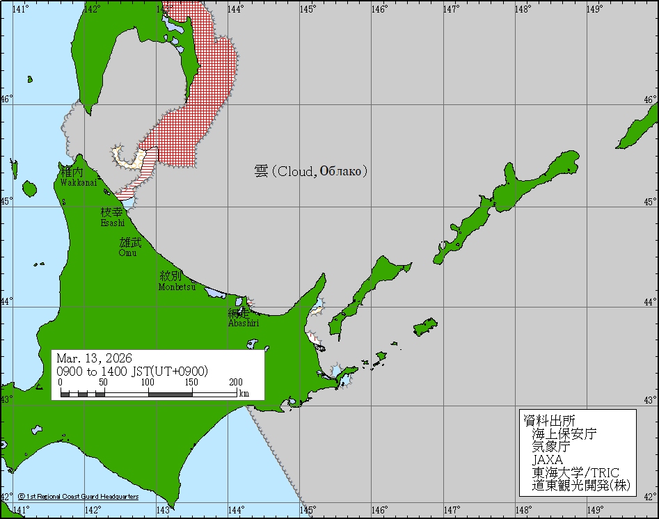 Sea around Japan - Concentration Japan Ice Information Center (Japan Coast Guard) ice-concentration 13 Mar 2026 260313 | ||