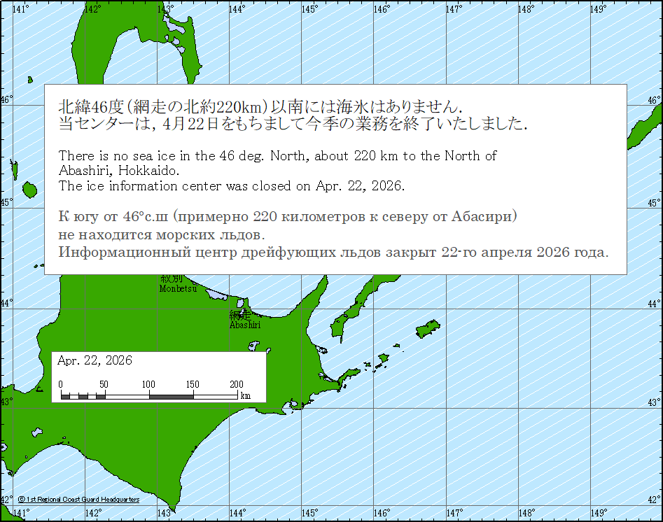 Sea around Japan - Concentration Japan Ice Information Center (Japan Coast Guard) ice-concentration 22 Apr 2026 260422 |