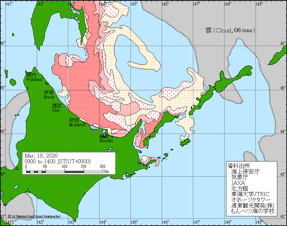 Sea around Japan - Concentration Japan Ice Information Center (Japan Coast Guard) ice-concentration 19 Mar 2026 260319 | ||