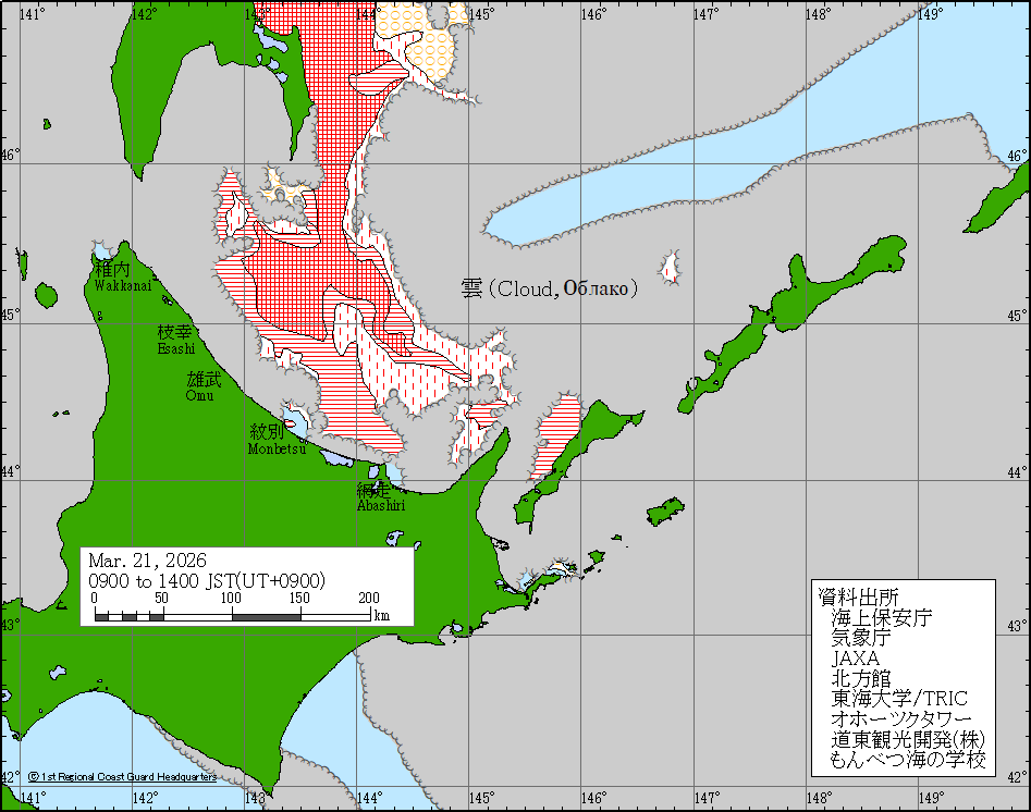 Sea around Japan - Concentration Japan Ice Information Center (Japan Coast Guard) ice-concentration 21 Mar 2026 260321 | ||