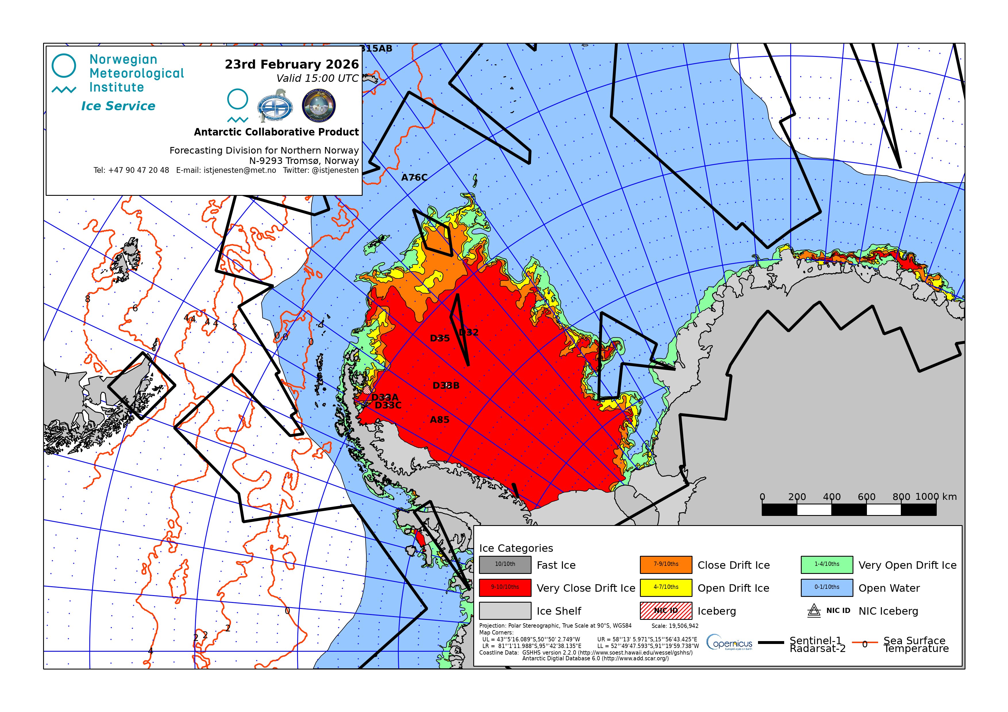 Antarctic Peninsula Norwegian Meteorological Institute - Norwegian Ice Service ice-concentration 3 Mar 2026 20260303 | ||