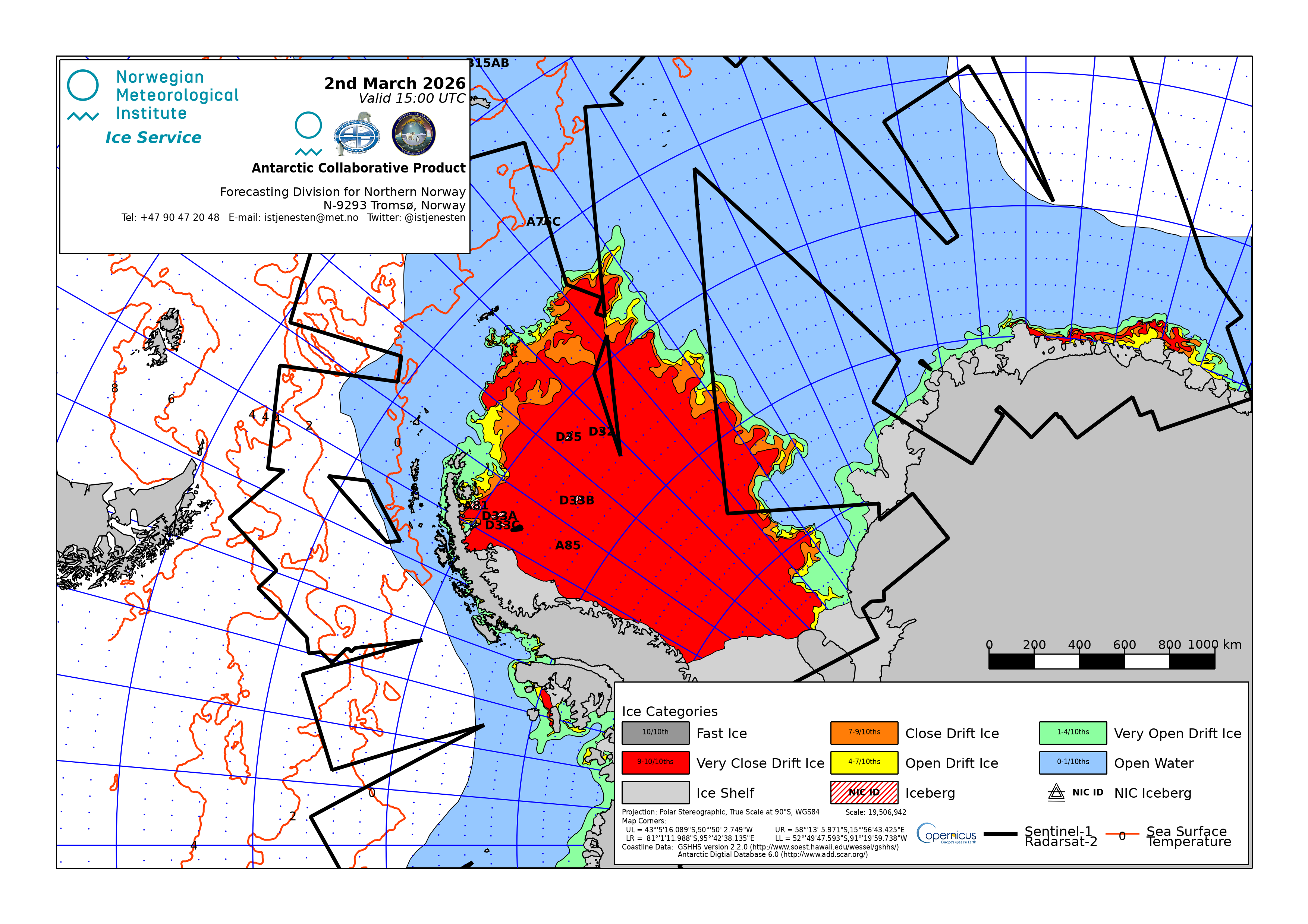 Antarctic Norwegian Meteorological Institute - Norwegian Ice Service ice-concentration 2 Mar 2026 20260302 |