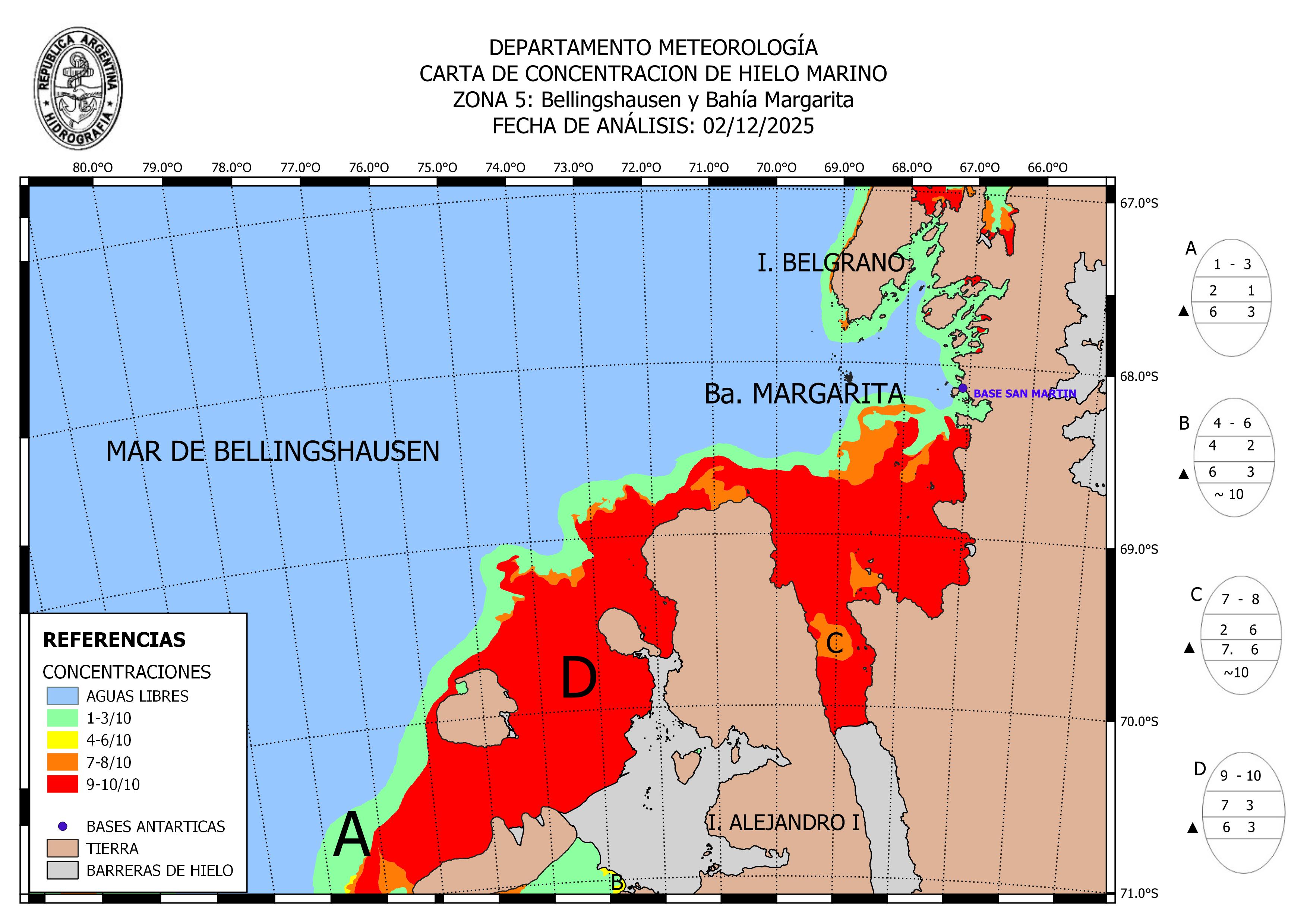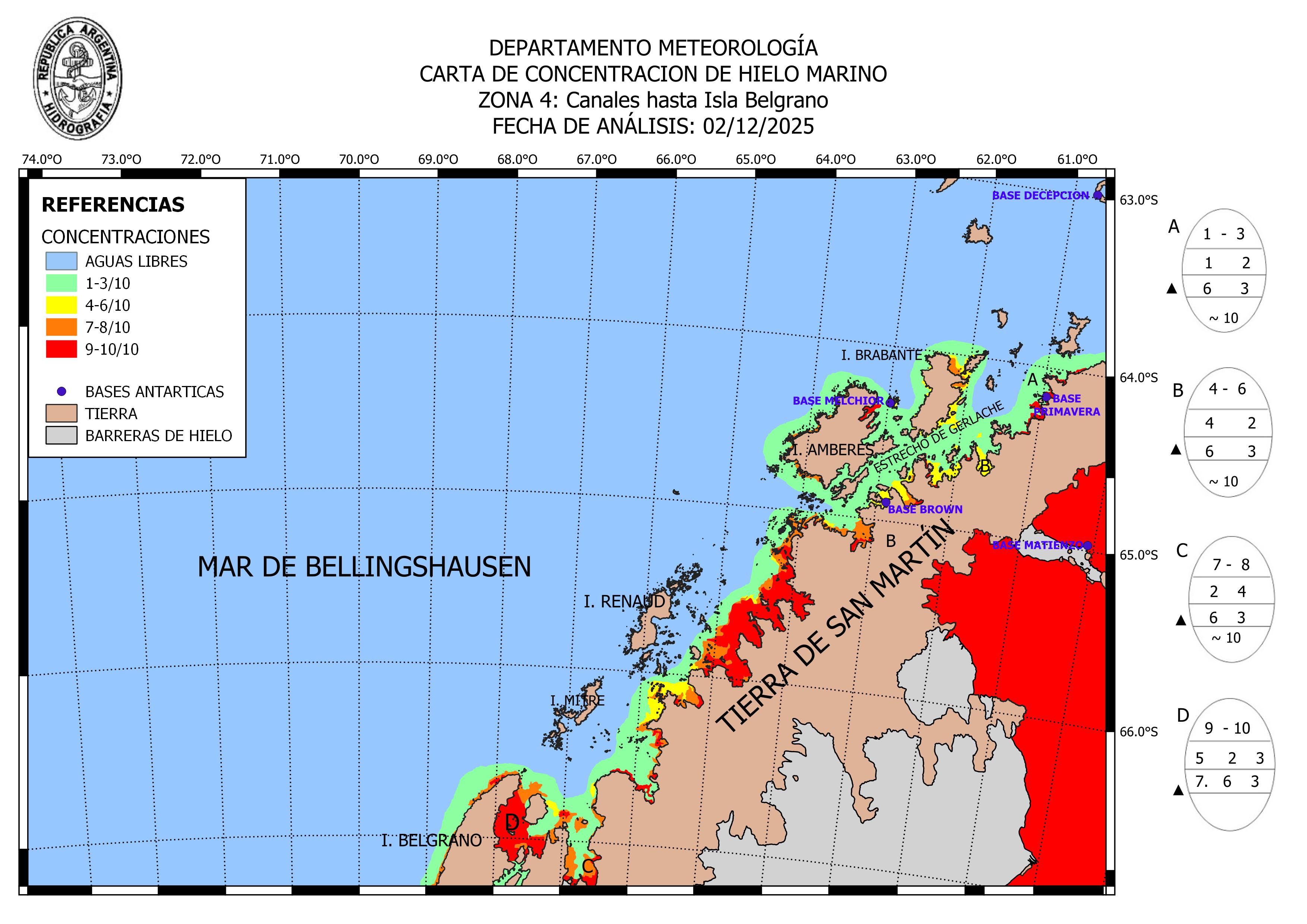 Antarctic Peninsula West Argentine Naval Hydrographic Service ice-concentration 2 Dec 2025 20251202_ZONA4 | ||