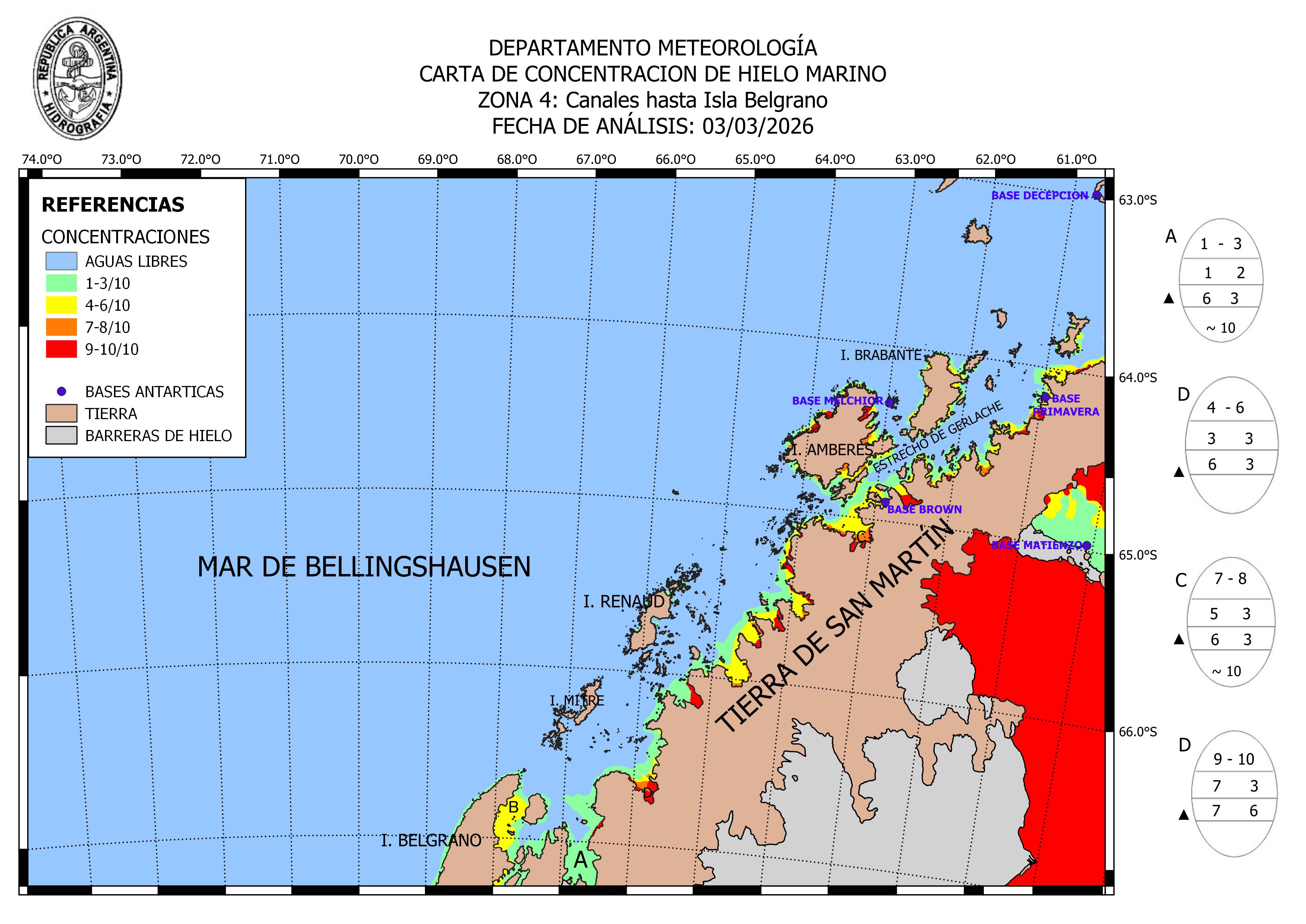Antarctic Peninsula West Argentine Naval Hydrographic Service ice-concentration 3 Mar 2026 20260303_ZONA4 | ||