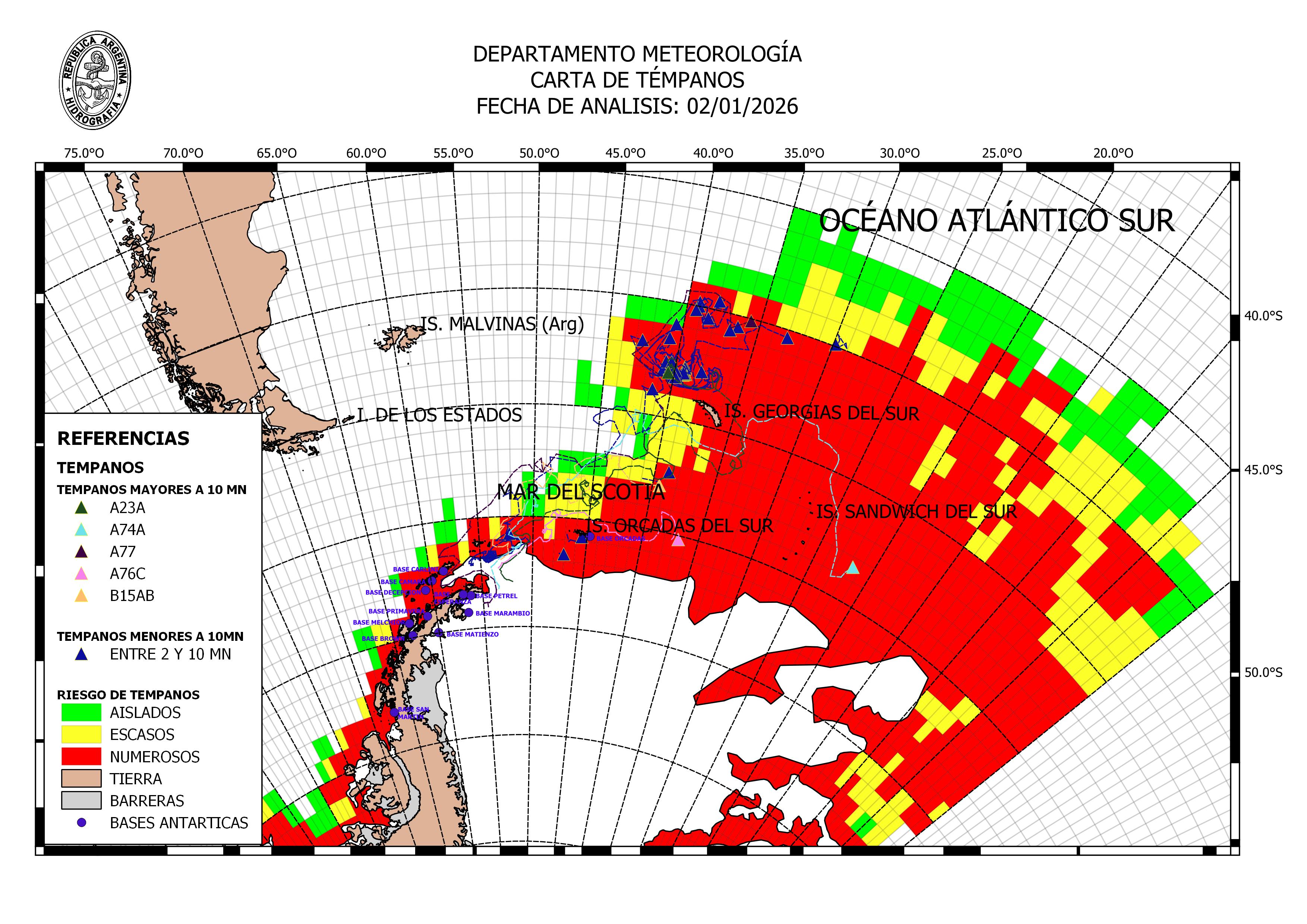 South Atlantic Ice Berg Analysis Argentine Naval Hydrographic Service ice-berg 2 Jan 2026 20260102_T10 | ||