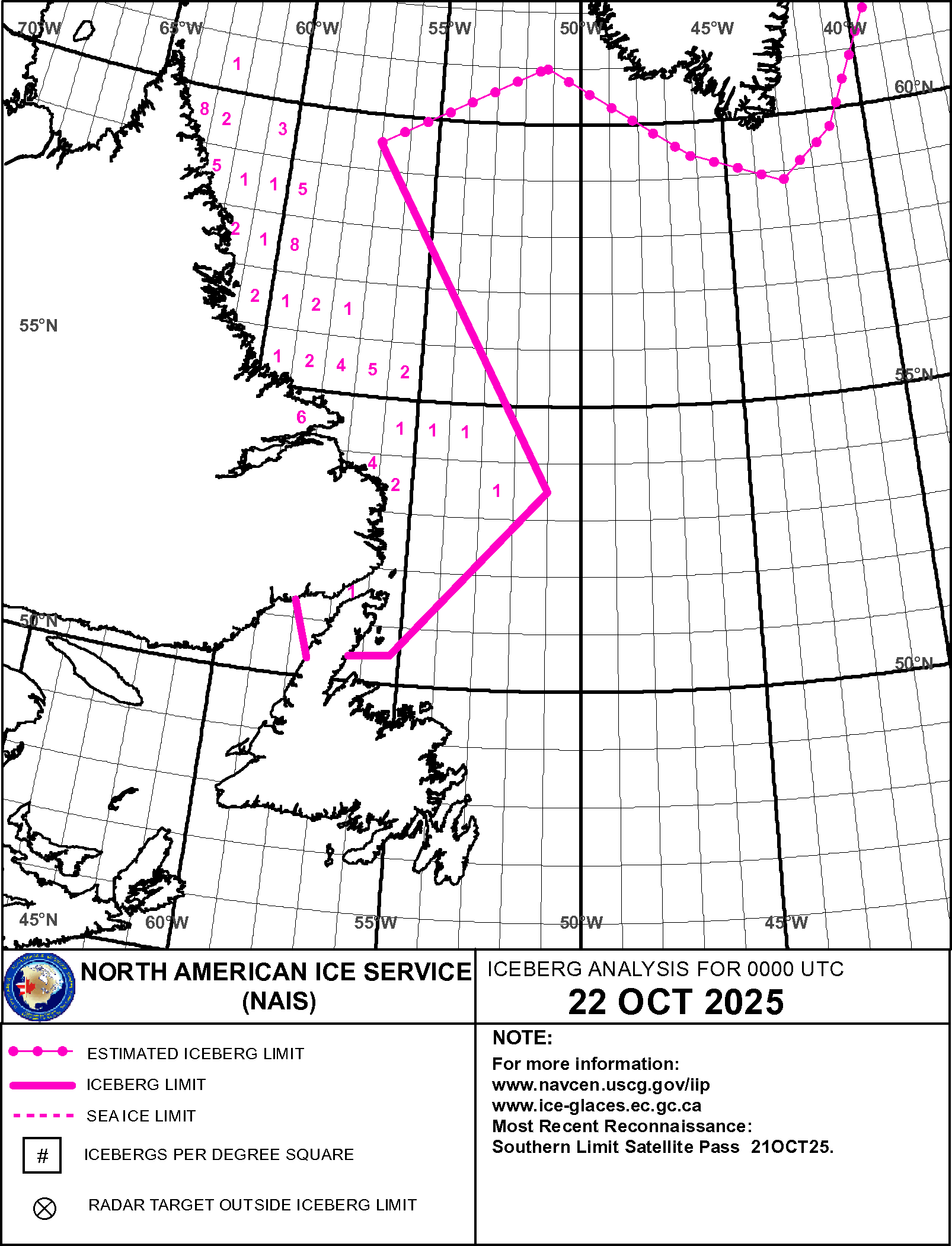 Iceberg Analysis USCG International Ice Patrol ice-berg 22 Oct 2025 20251022_NAIS65 | ||