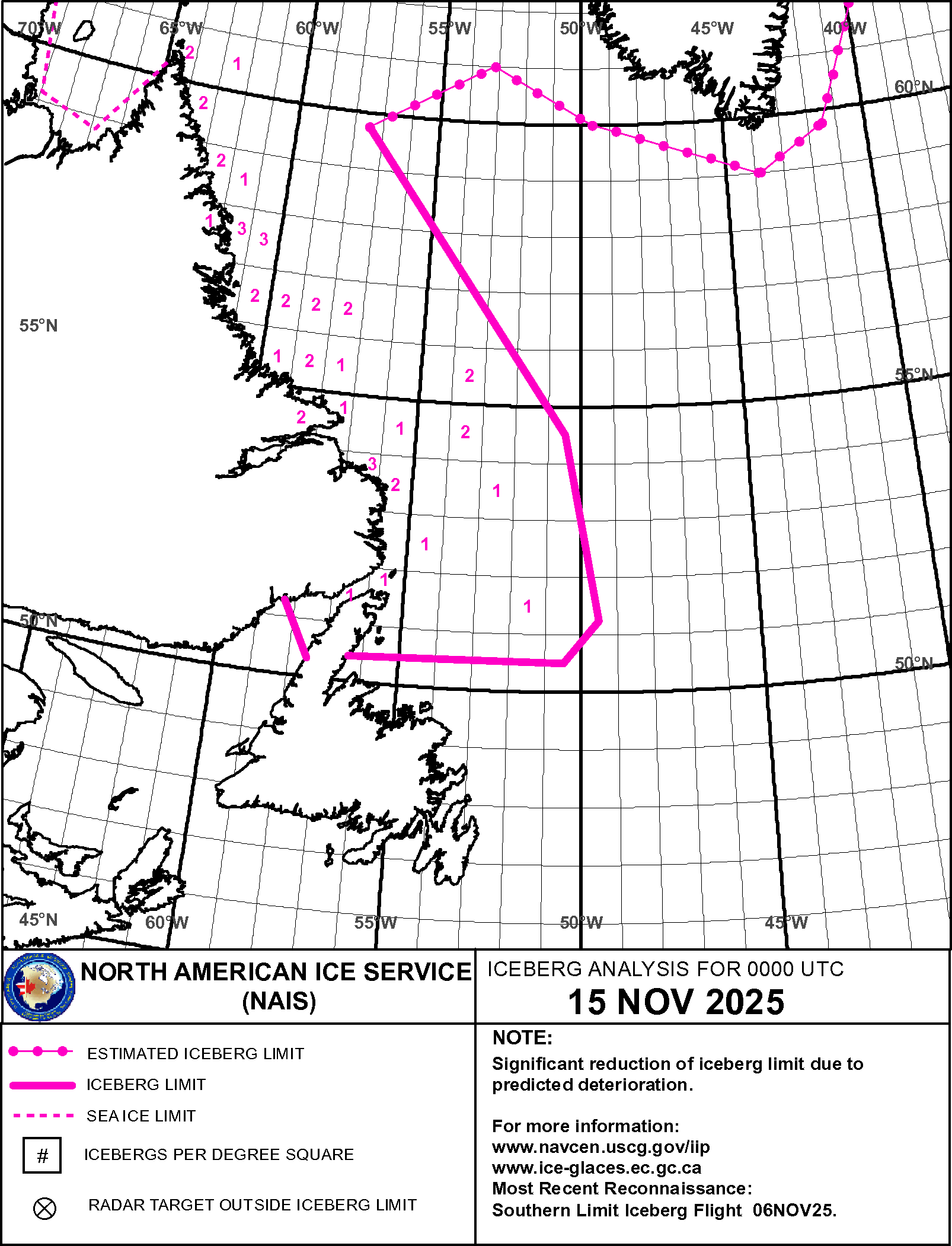 Iceberg Analysis USCG International Ice Patrol ice-berg 15 Nov 2025 20251115_NAIS65 | ||