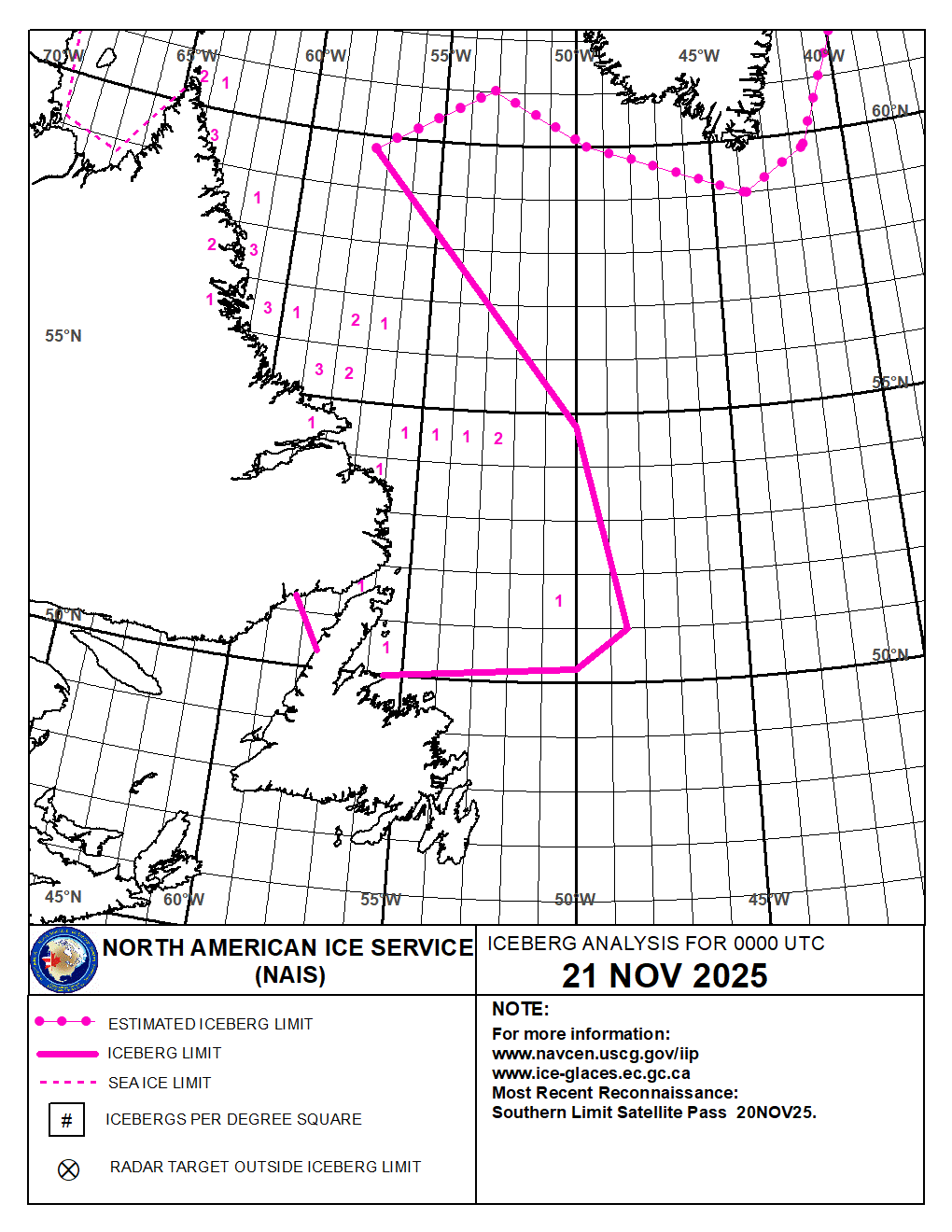 Iceberg Analysis USCG International Ice Patrol ice-berg 21 Nov 2025 20251121_NAIS65 | ||