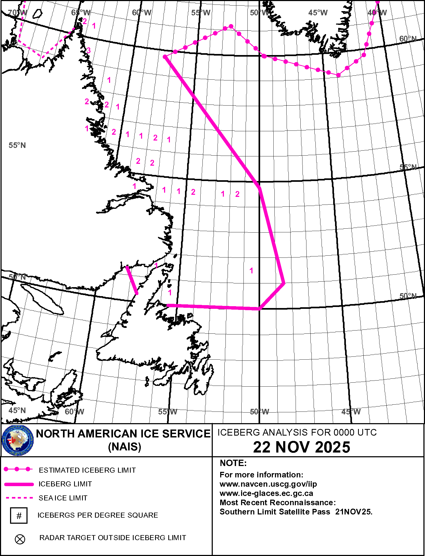 Iceberg Analysis USCG International Ice Patrol ice-berg 22 Nov 2025 20251122_NAIS65 | ||