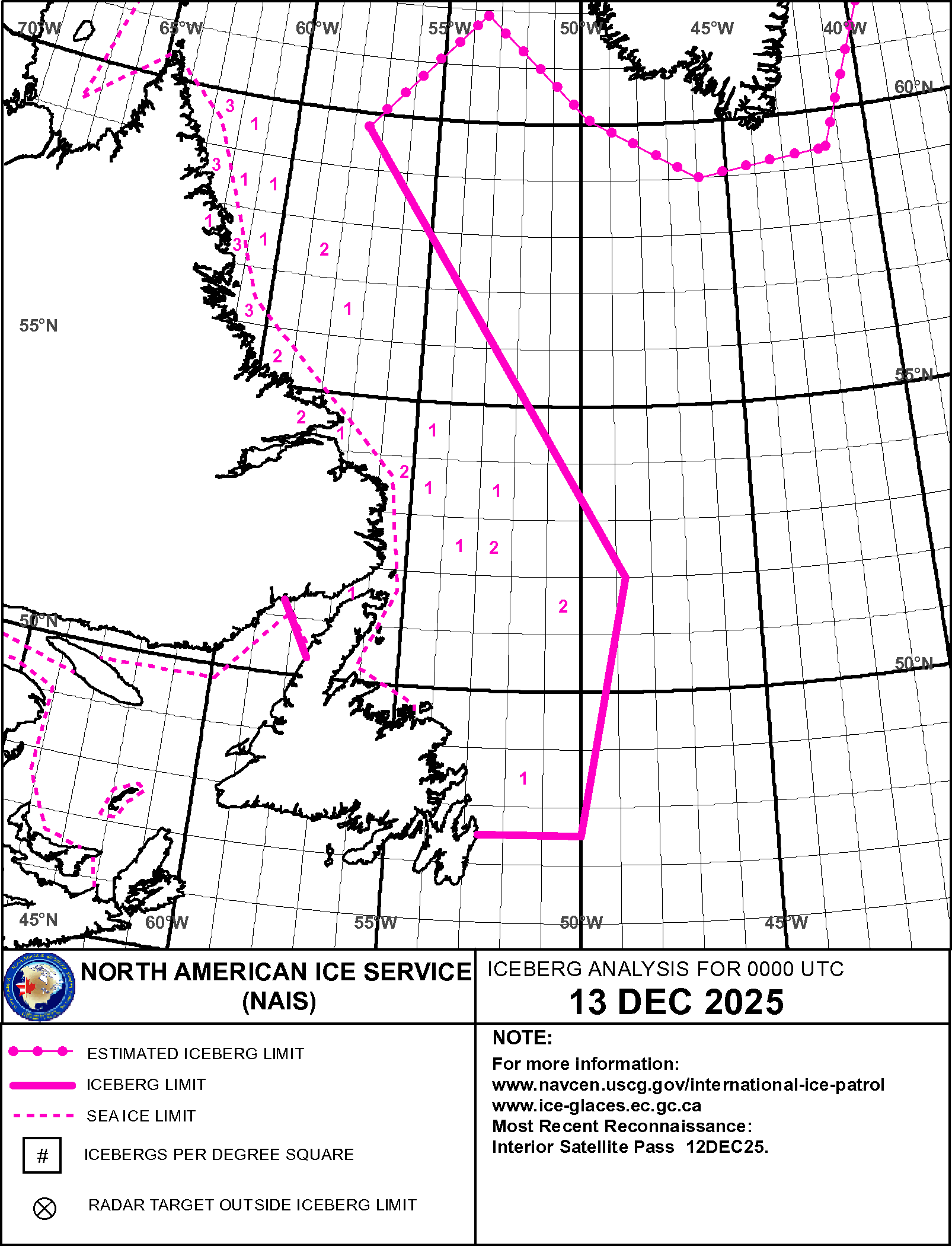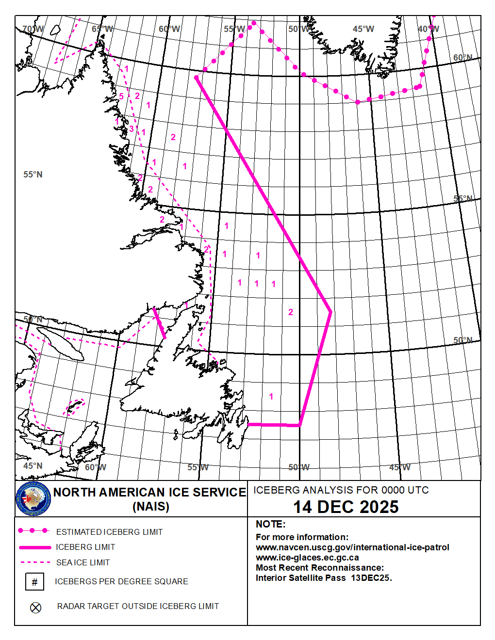 Iceberg Analysis USCG International Ice Patrol ice-berg 14 Dec 2025 20251214_NAIS65 | ||