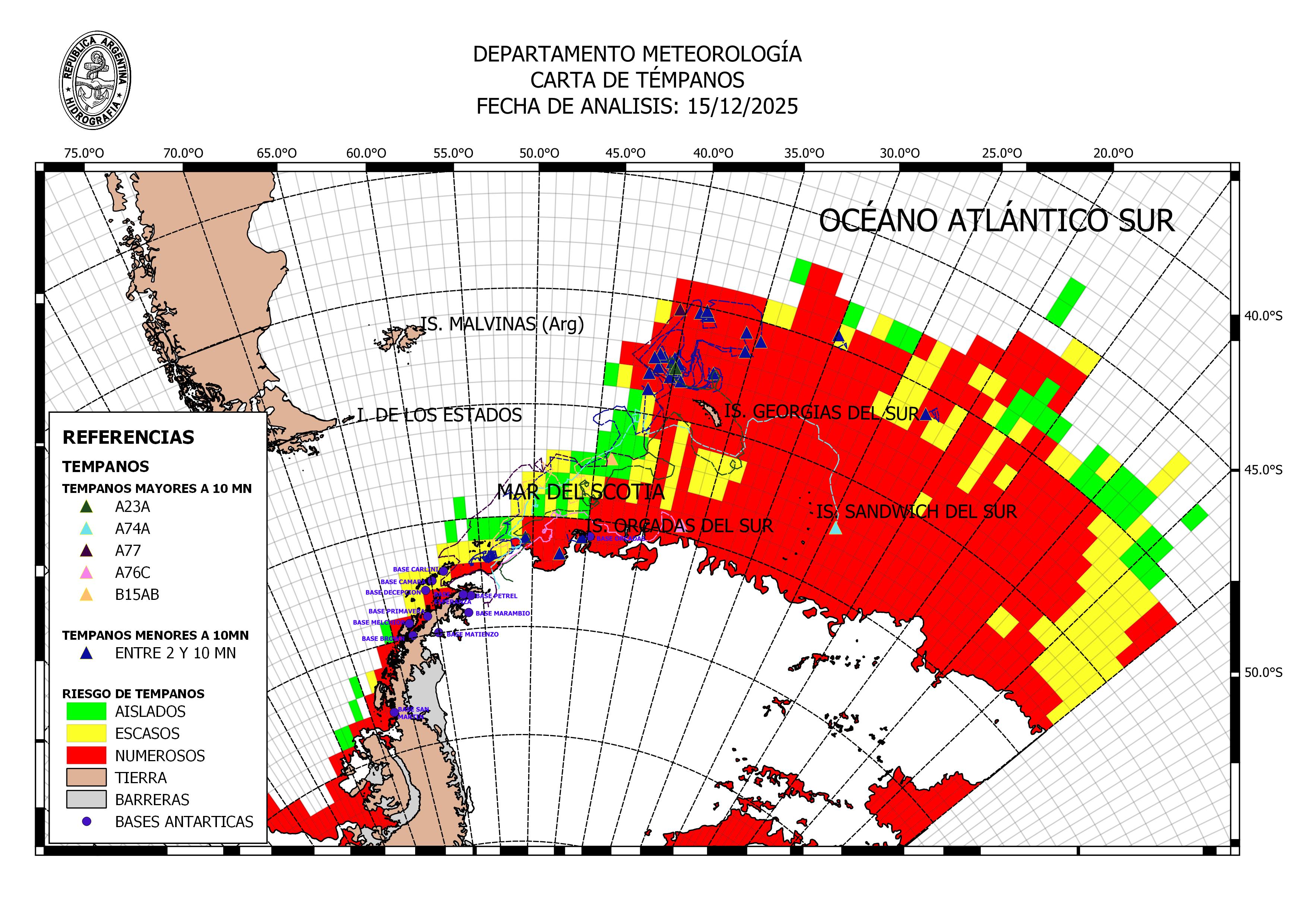 South Atlantic Ice Berg Analysis Argentine Naval Hydrographic Service ice-berg 15 Dec 2025 20251215_T10 | ||