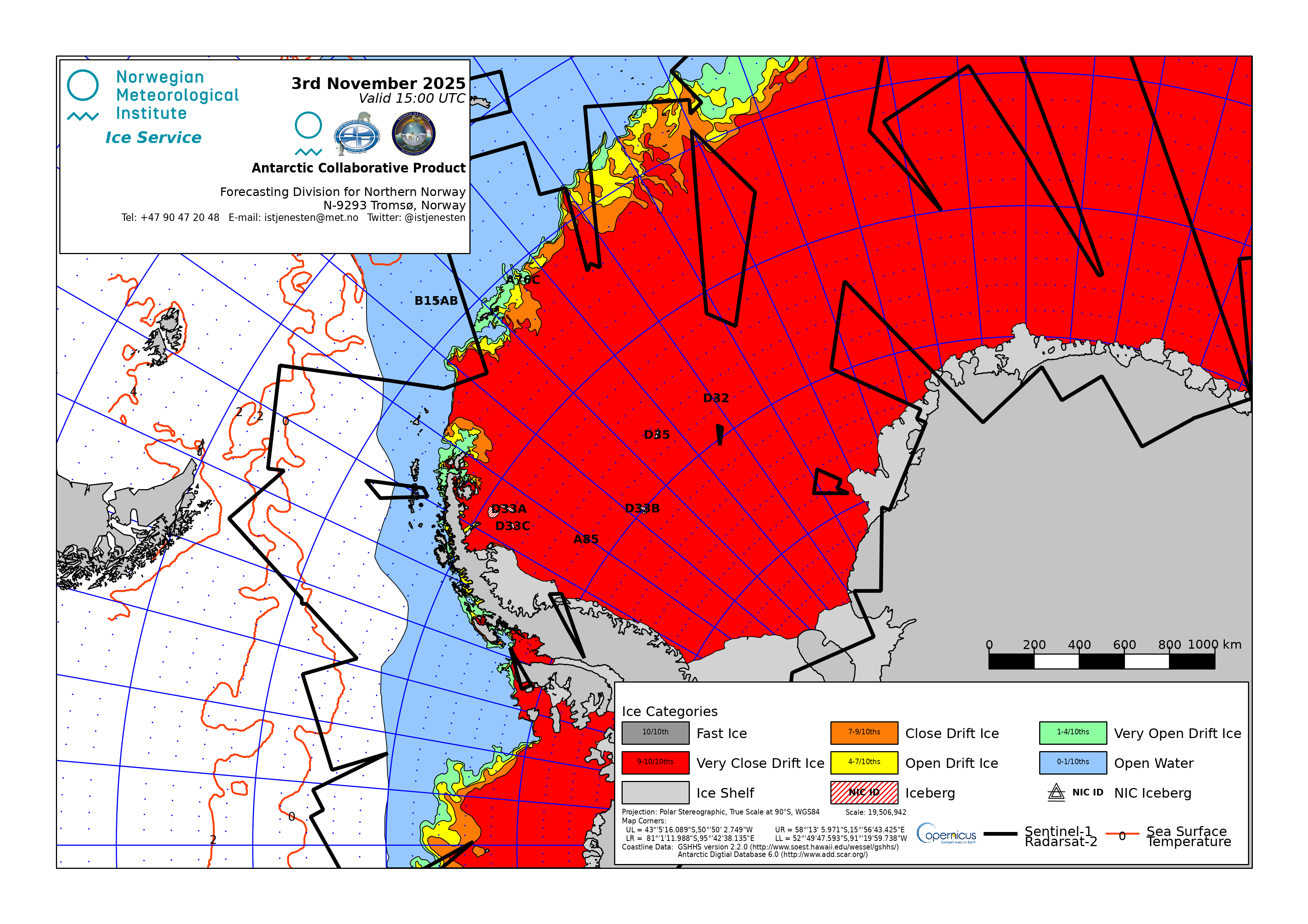 Antarctic Peninsula Norwegian Meteorological Institute - Norwegian Ice Service ice-concentration 10 Nov 2025 20251110 | ||
