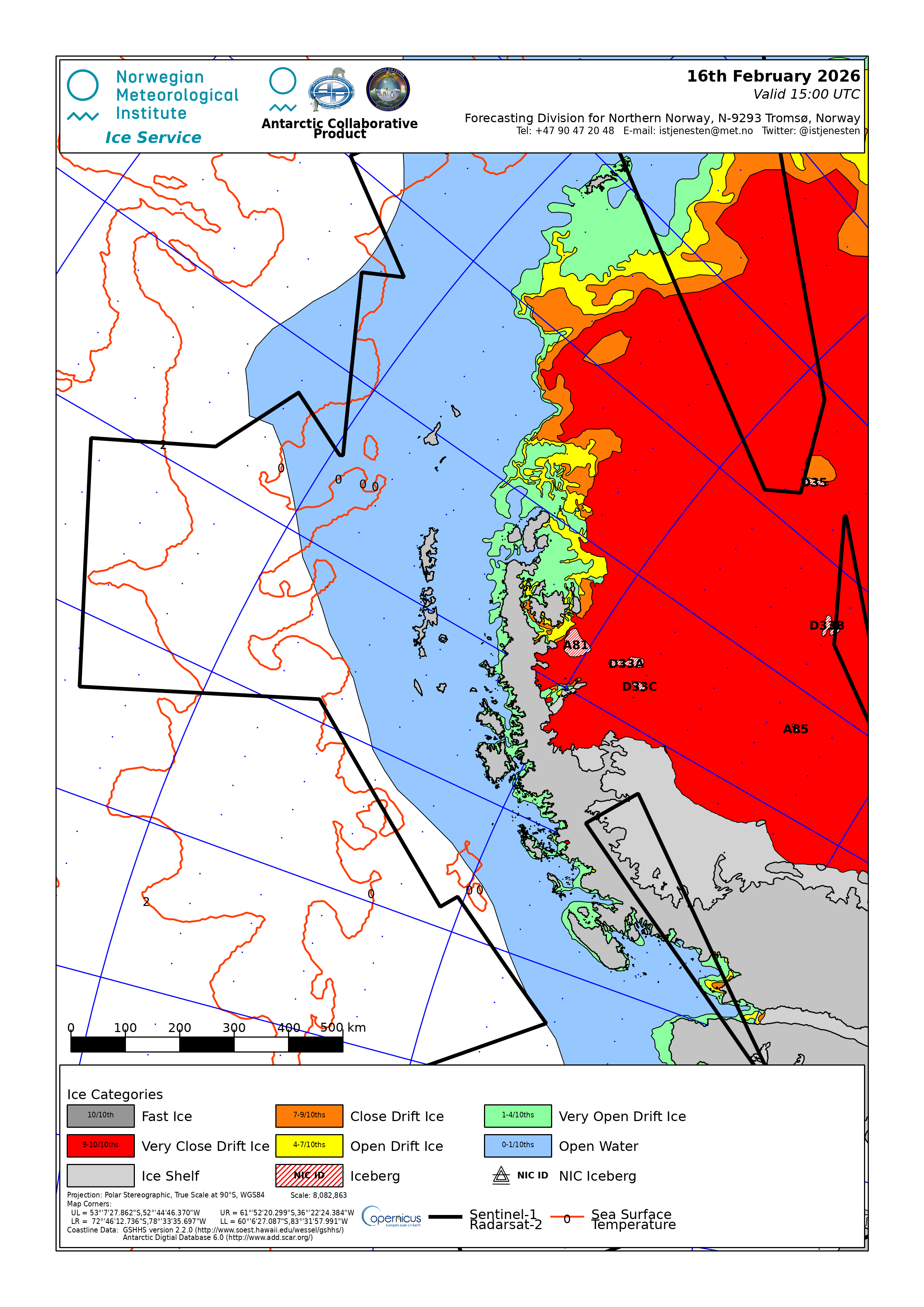 Bransfield Strait Norwegian Meteorological Institute - Norwegian Ice Service ice-concentration 18 Feb 2026 20260218 | ||