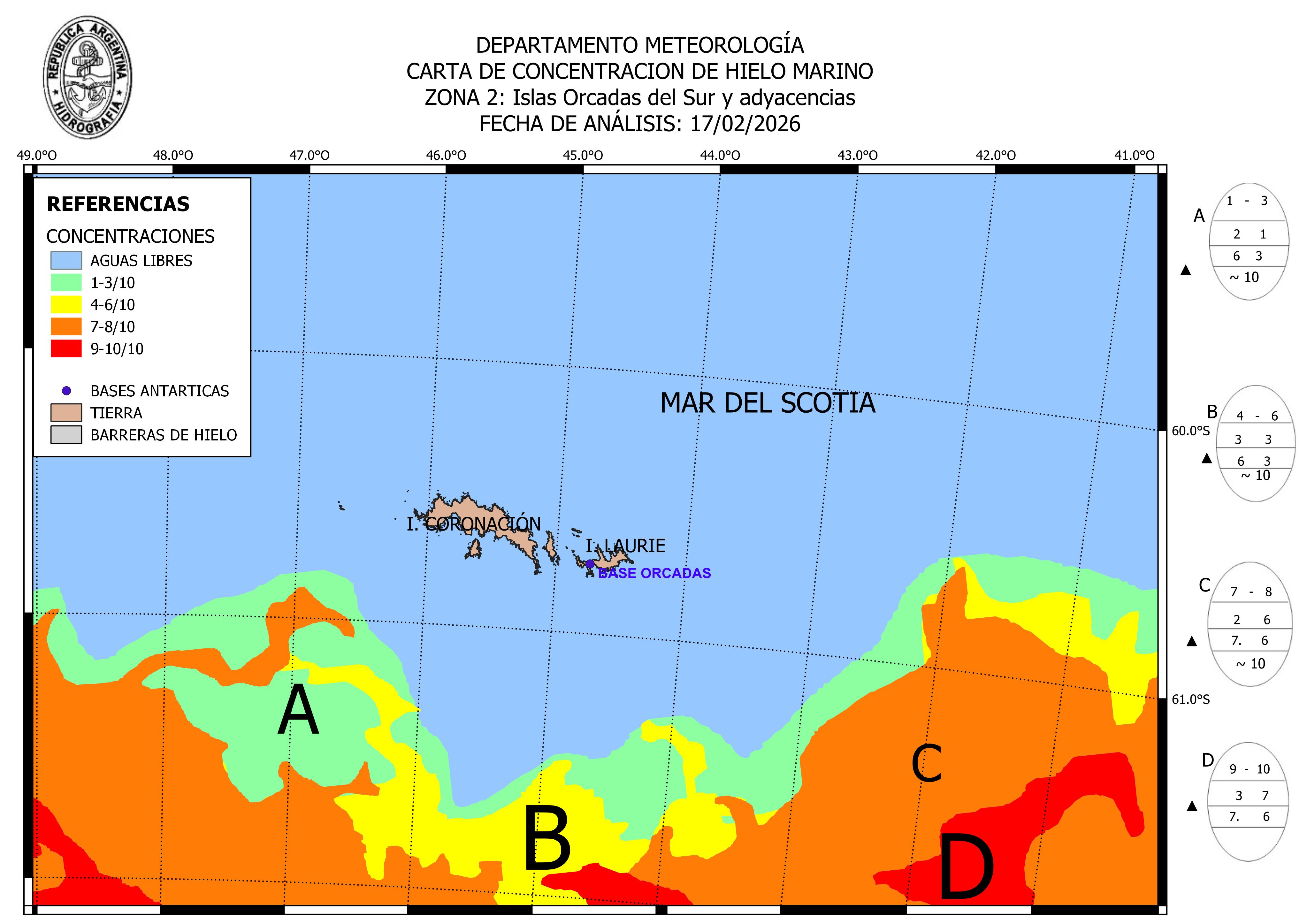 South Orkneys Argentine Naval Hydrographic Service ice-concentration 17 Feb 2026 20260217_ZONA2 | ||