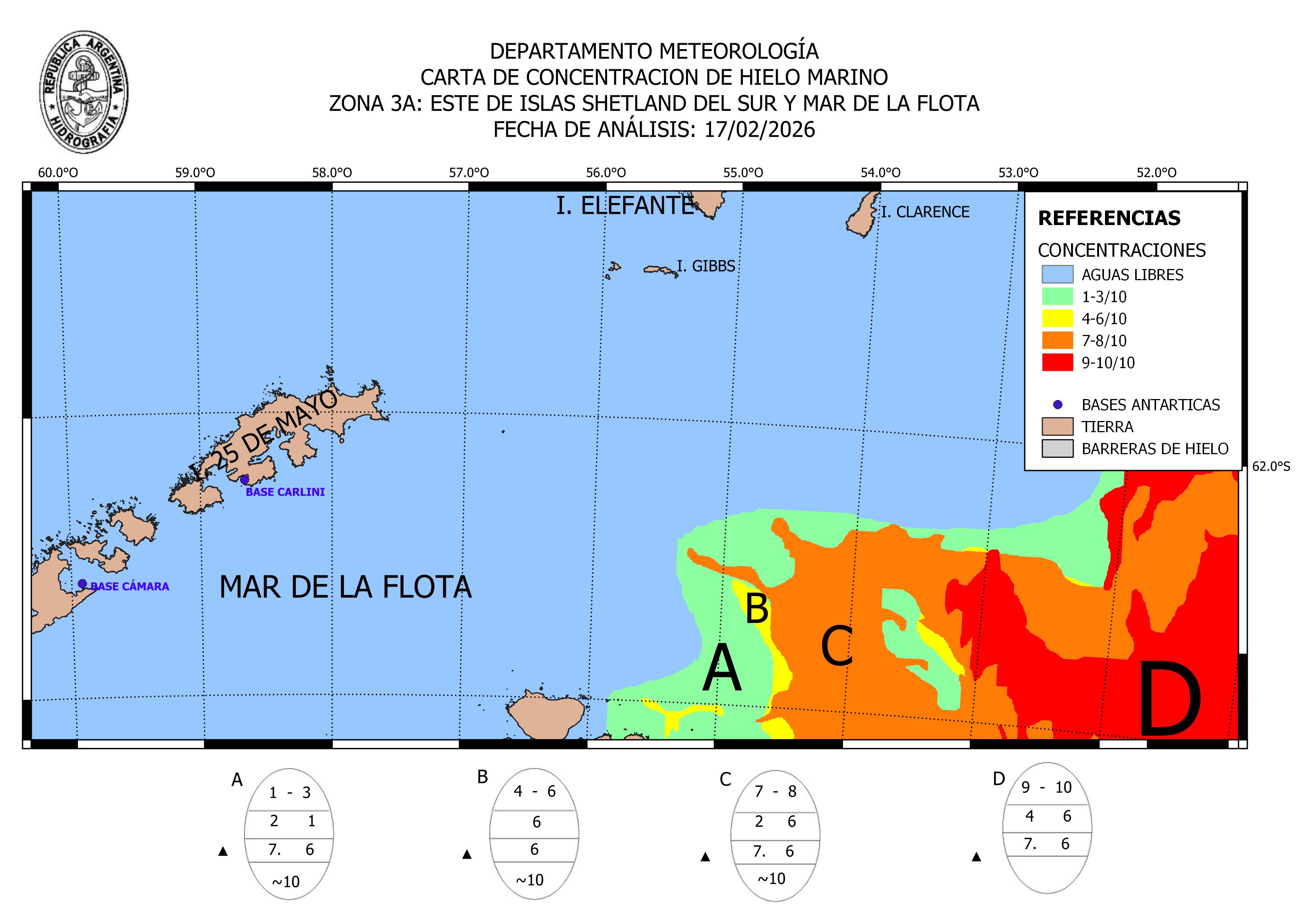 South Shetland Islands East Argentine Naval Hydrographic Service ice-concentration 17 Feb 2026 20260217_ZONA3A | ||