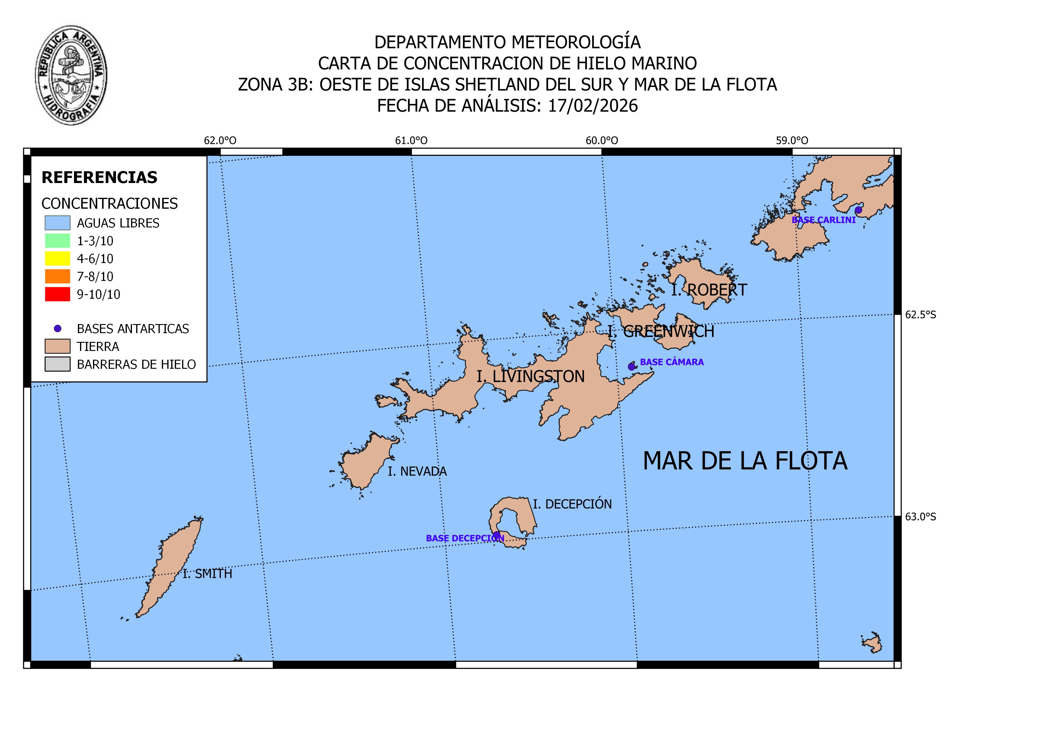 South Shetland Islands West Argentine Naval Hydrographic Service ice-concentration 17 Feb 2026 20260217_ZONA3B |
