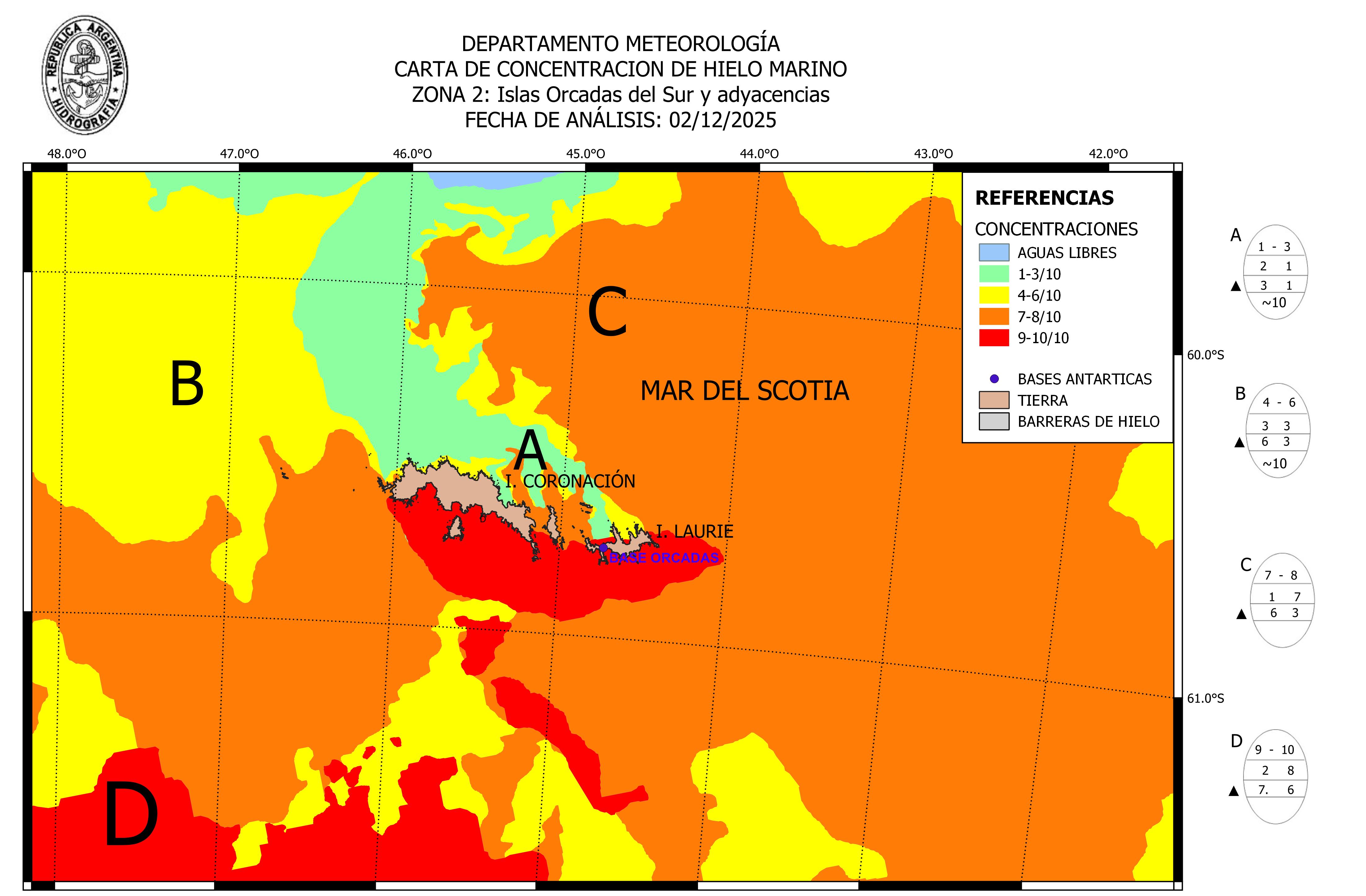 South Orkneys Argentine Naval Hydrographic Service ice-concentration 2 Dec 2025 20251202_ZONA2 | ||
