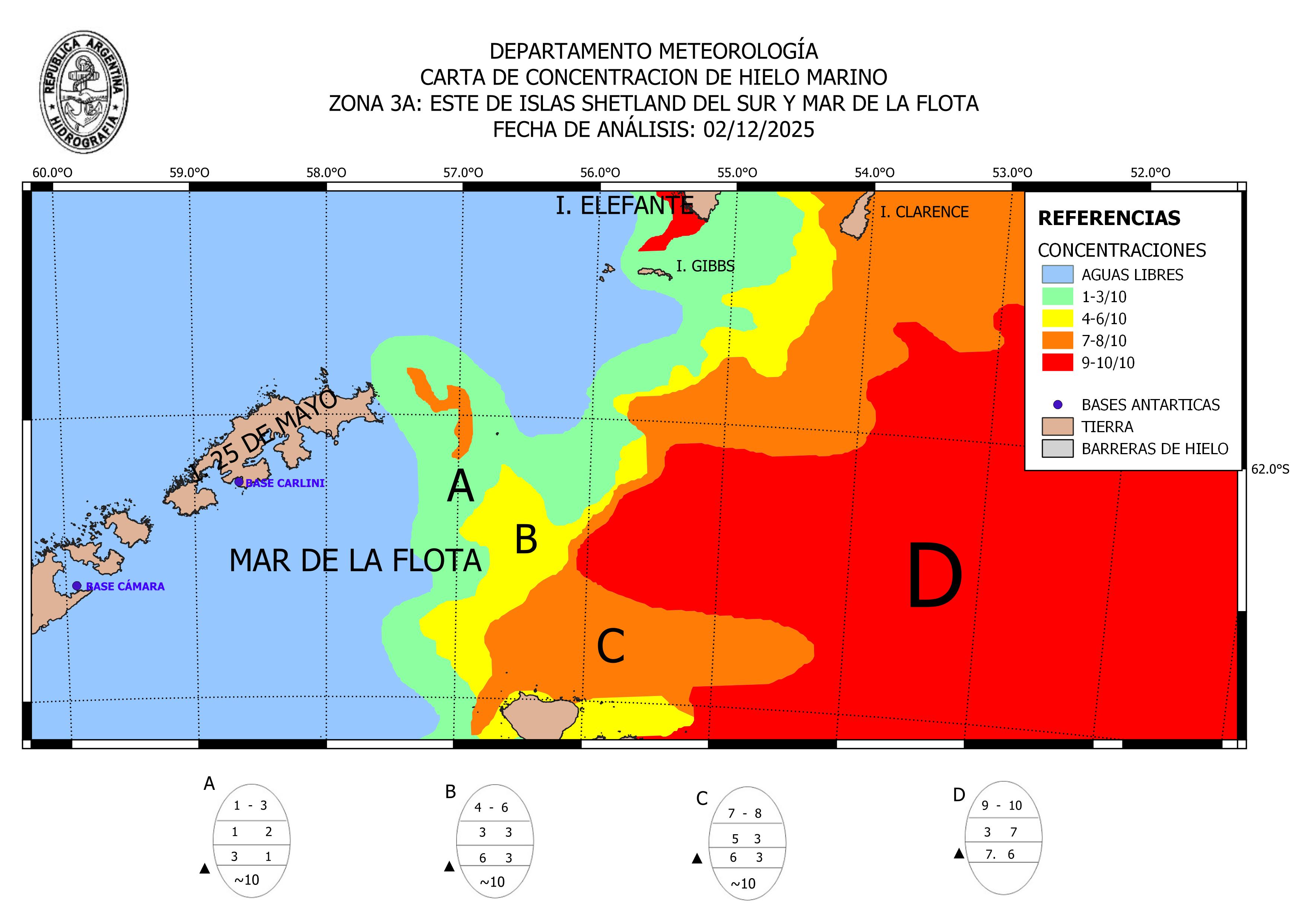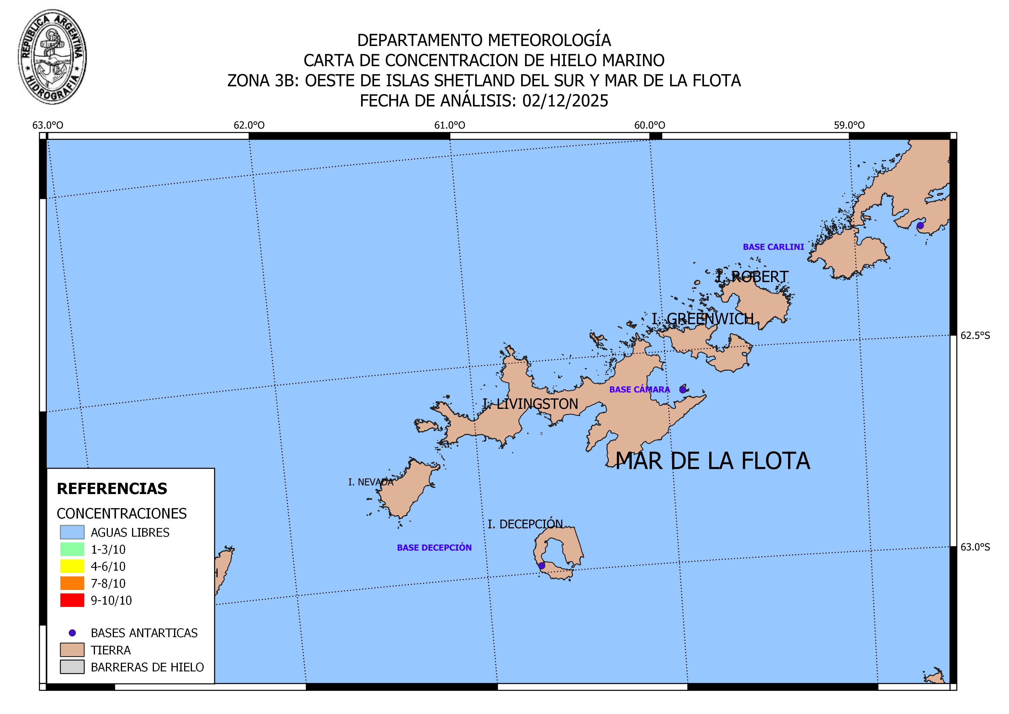 South Shetland Islands West Argentine Naval Hydrographic Service ice-concentration 2 Dec 2025 20251202_ZONA3B | ||