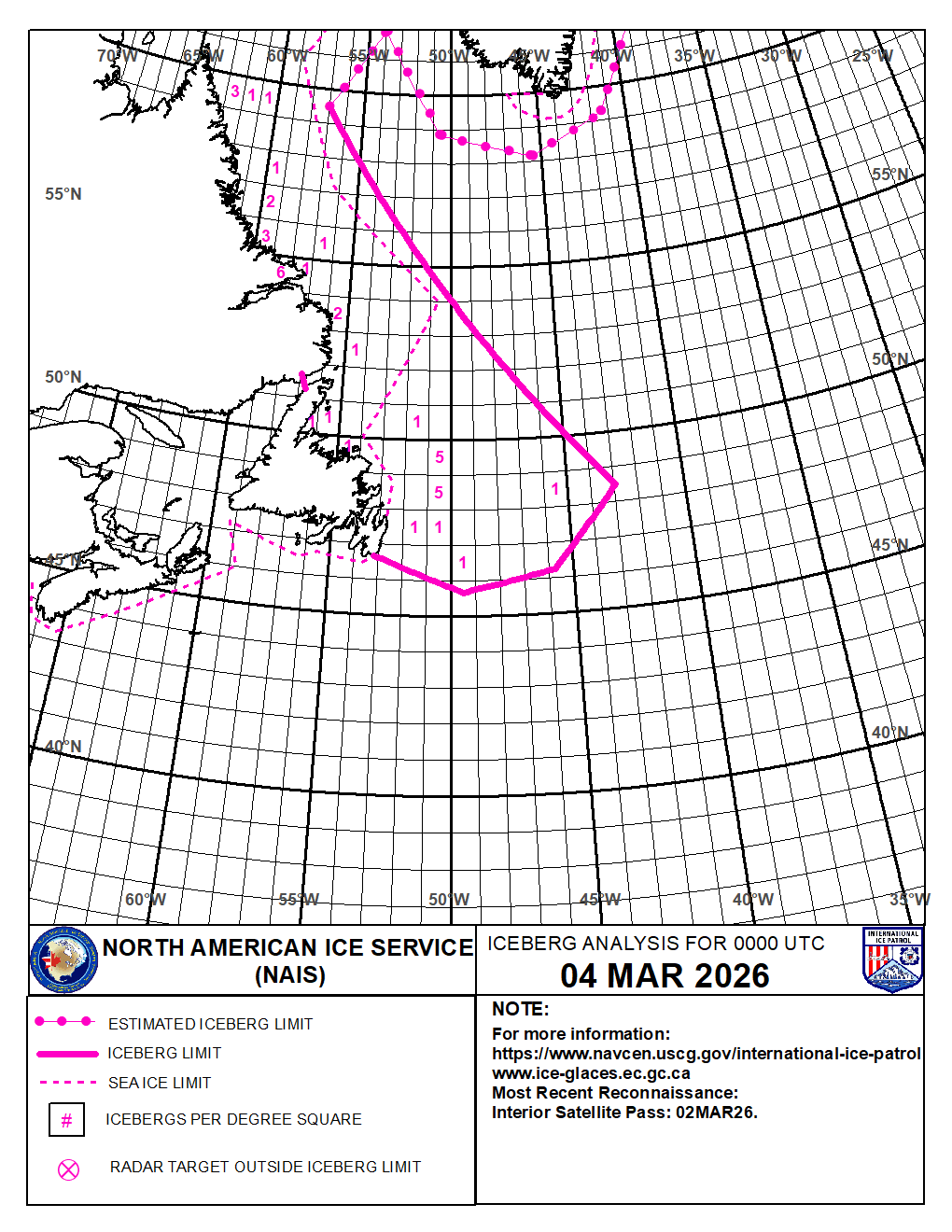 Iceberg Analysis USCG International Ice Patrol ice-berg 4 Mar 2026 20260304_NAIS65 | ||