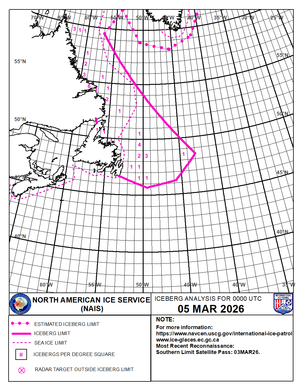 Iceberg Analysis USCG International Ice Patrol ice-berg 5 Mar 2026 20260305_NAIS65 | ||
