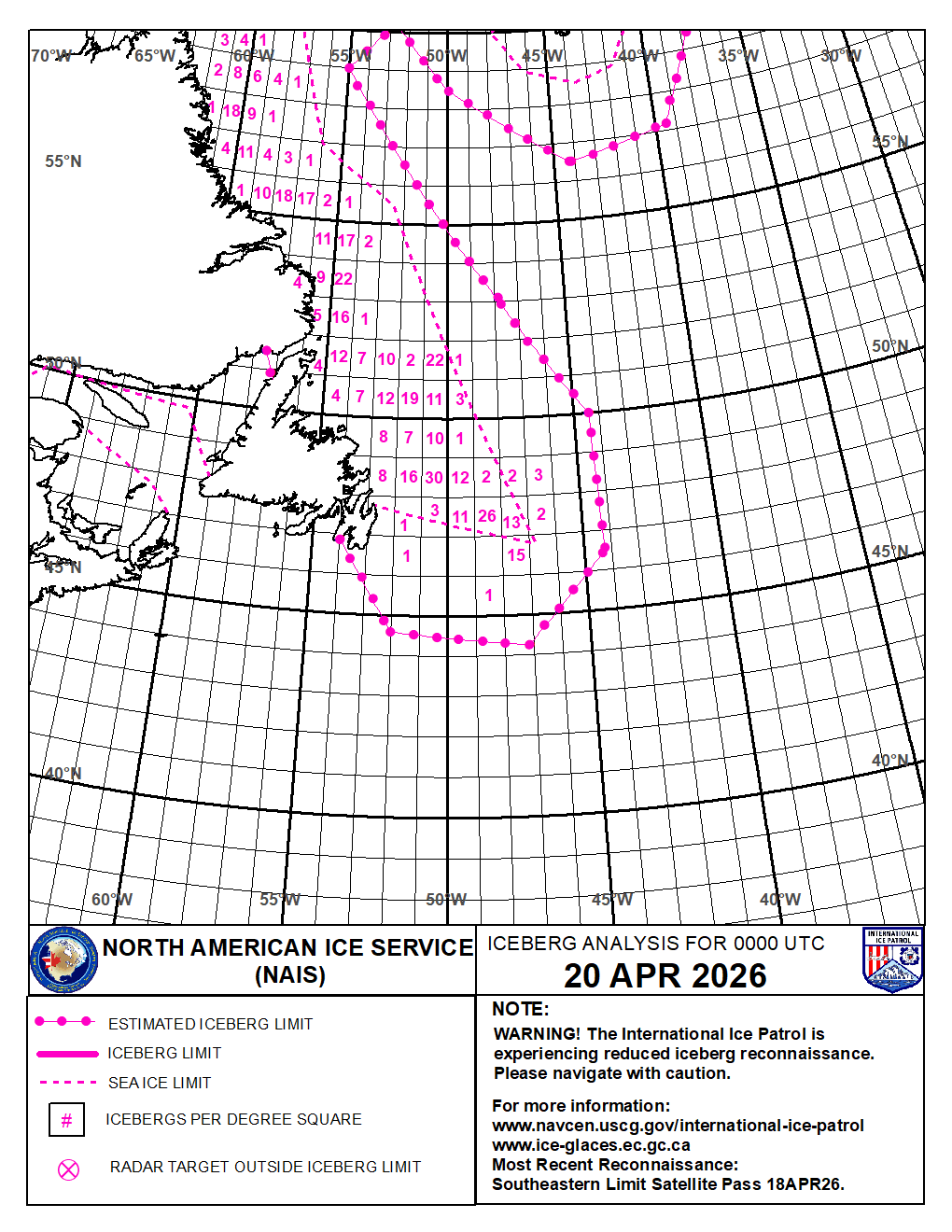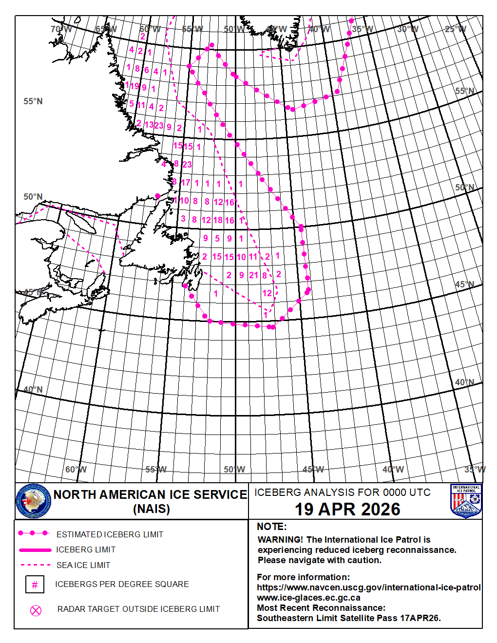 Iceberg Analysis USCG International Ice Patrol ice-berg 19 Apr 2026 20260419_NAIS65 | ||
