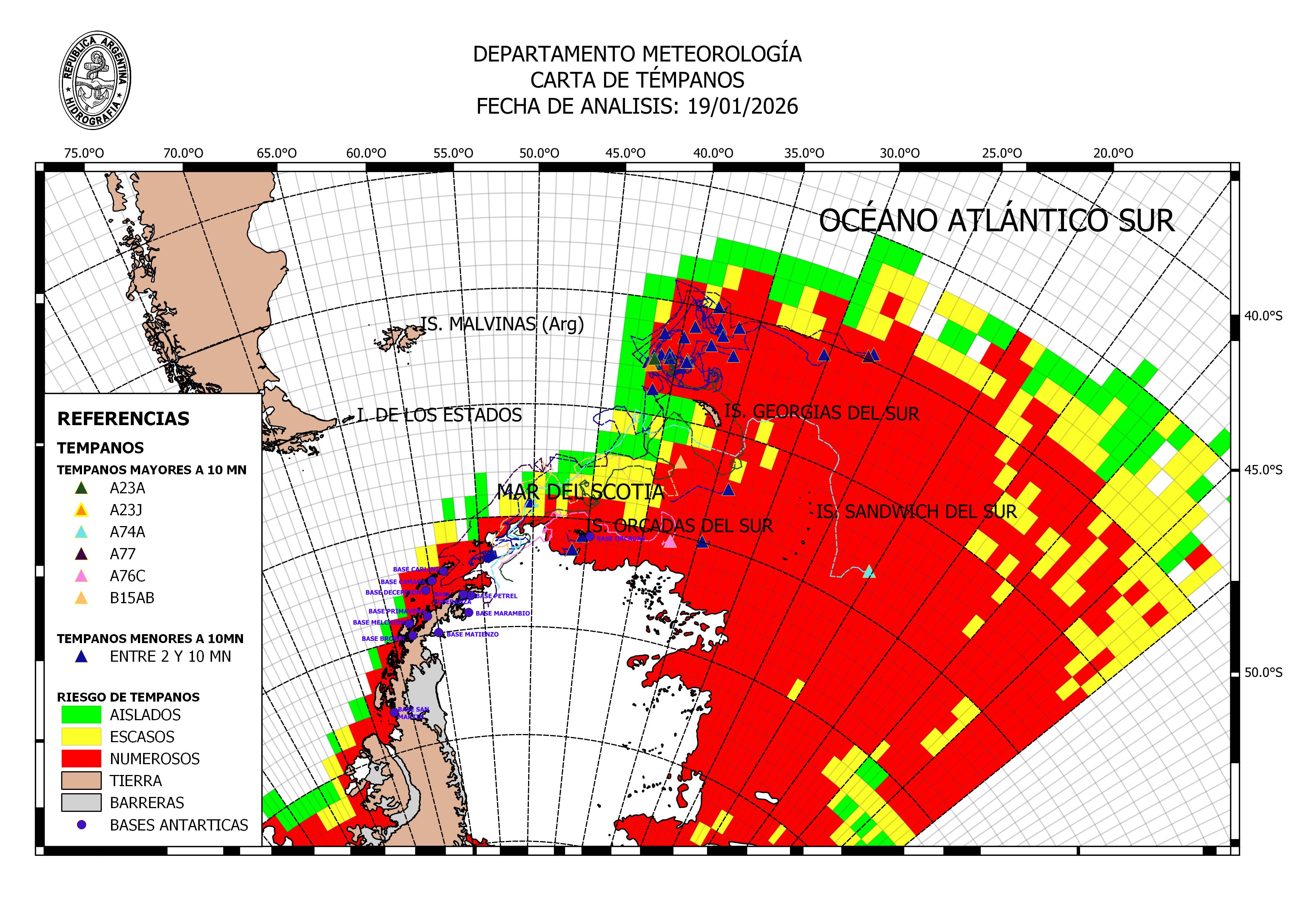 South Atlantic Ice Berg Analysis Argentine Naval Hydrographic Service ice-berg 19 Jan 2026 20260119_T10 | ||