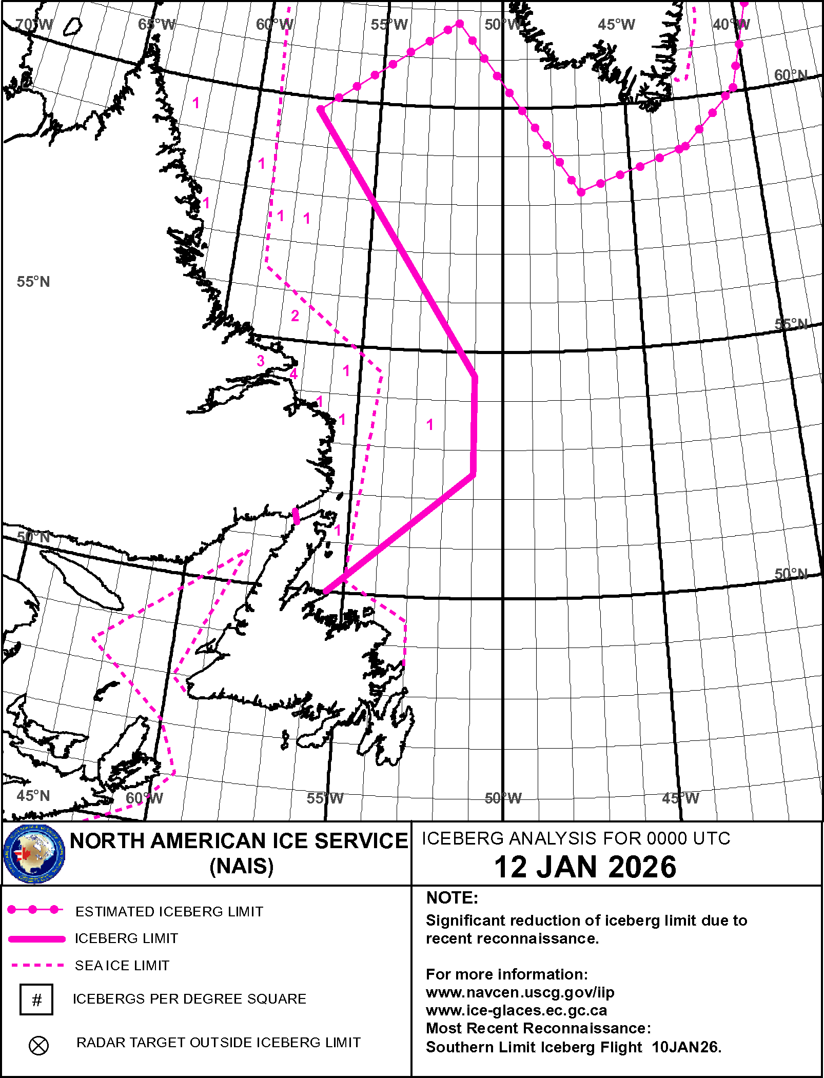 Iceberg Analysis USCG International Ice Patrol ice-berg Jan 12, 2026 20260112_NAIS65 | ||