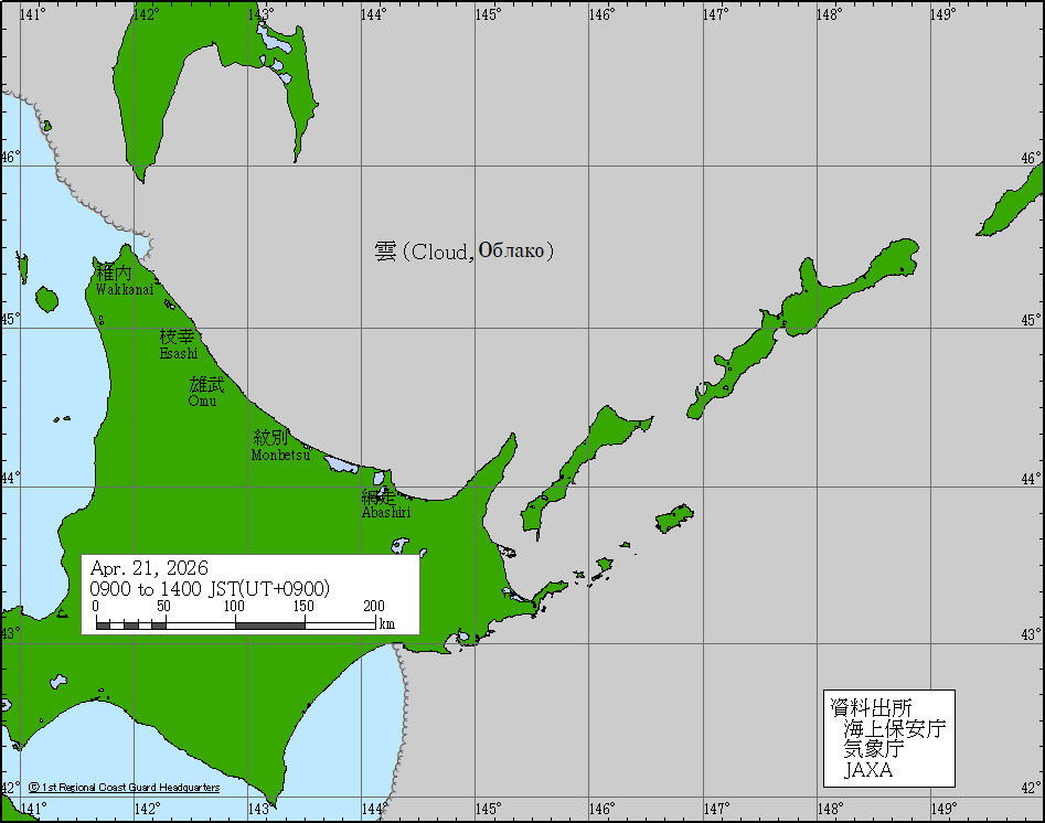 Sea around Japan - Concentration Japan Ice Information Center (Japan Coast Guard) ice-concentration Apr 21, 2026 260421 | ||