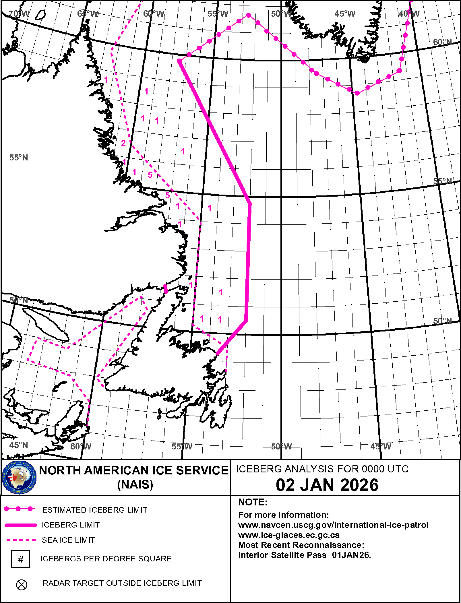 Iceberg Analysis USCG International Ice Patrol ice-berg 2 Jan 2026 20260102_NAIS65 | ||