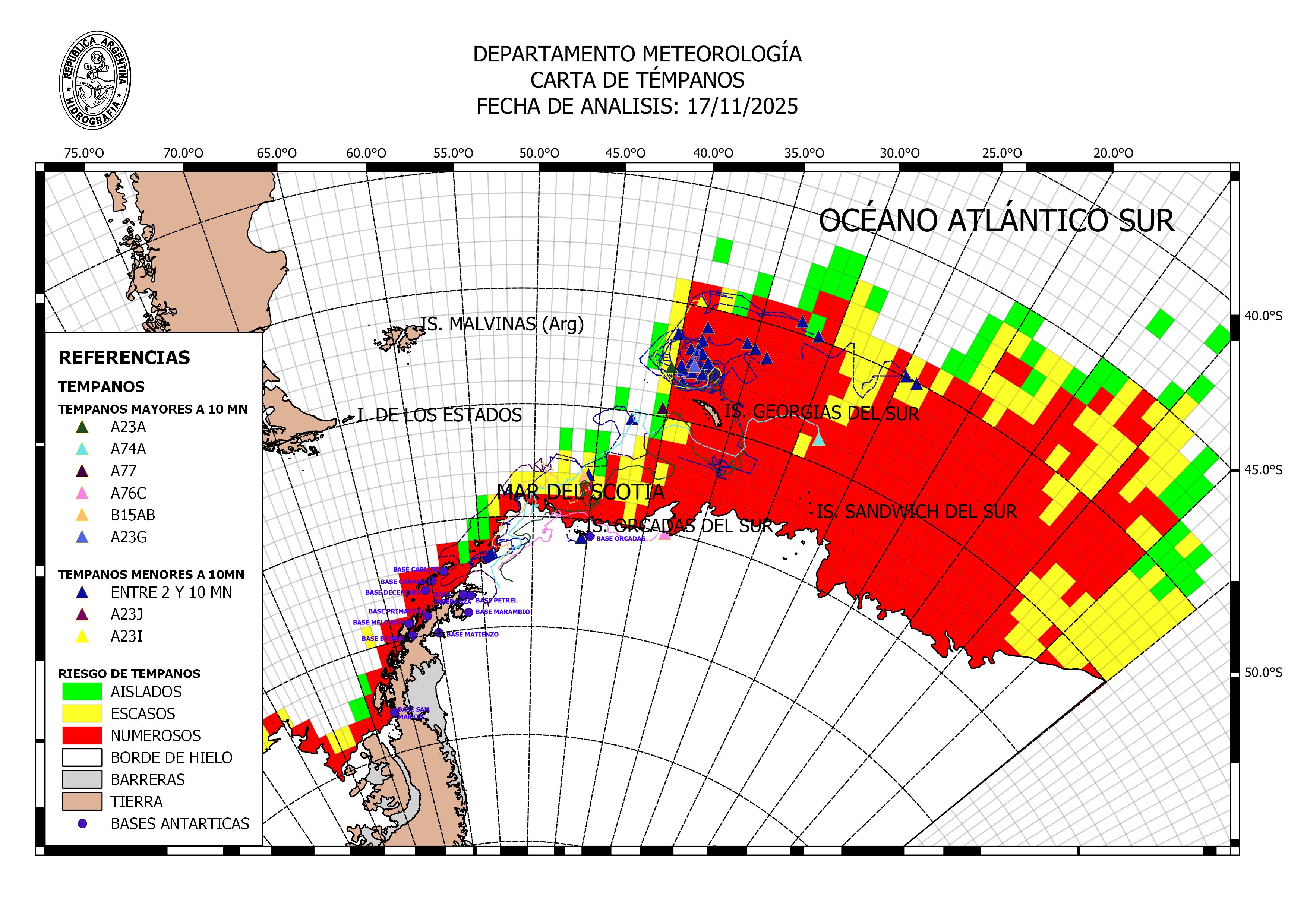 South Atlantic Ice Berg Analysis Argentine Naval Hydrographic Service ice-berg 17 Nov 2025 20251117_T10 | ||