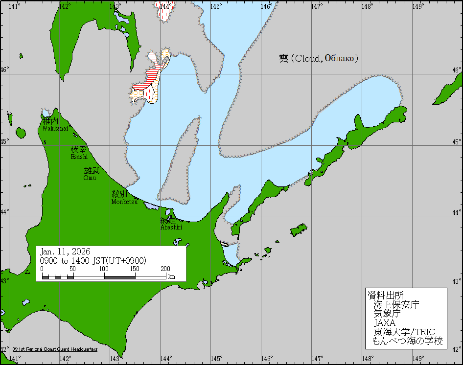 Sea around Japan - Concentration Japan Ice Information Center (Japan Coast Guard) ice-concentration Jan 11, 2026 260111 | ||