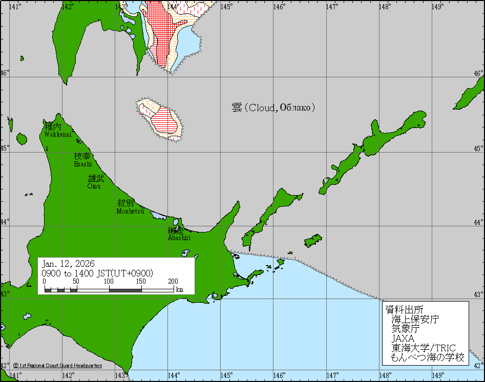 Sea around Japan - Concentration Japan Ice Information Center (Japan Coast Guard) ice-concentration Jan 12, 2026 260112 | ||